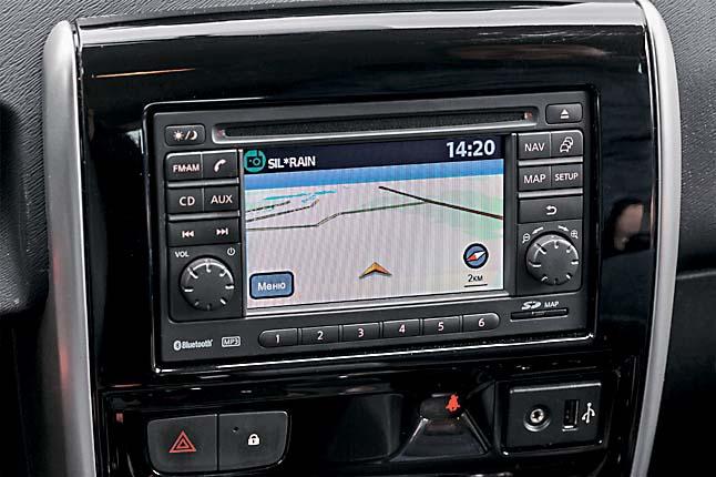 Гены все-таки не обманешь. Да, кнопки стеклоподъемников здесь переехали на дверь, но блок «климата» в нижней части центральной консоли по-прежнему перекрывается кочергой коробки передач. Свободный доступ к маховичкам климатической установки можно получить, лишь переведя селектор автомата в «drive». Ну и фирменная кнопка клаксона, размещенная не в ступице руля, а на торце подрулевого переключателя, никуда не делась. Зато порадовала опциональная мультимедийка с цветным сенсорным дисплеем. Графика у нее не ахти какая, но система удивила адекватным откликом, музыка звучит, да и в целом она работает хоть и не очень быстро, зато без подвисаний. Не на всех бюджетных моделях встретишь столь приятную и удобную в пользовании медиасистему.