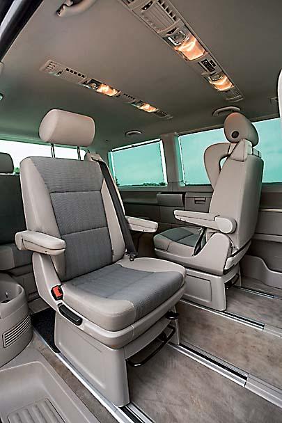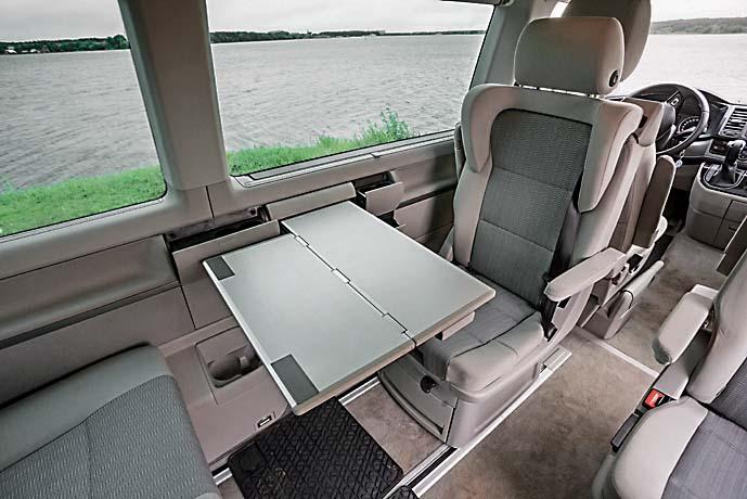 Однако яркость поставляется не бесплатно: за двухцветный окрас дилер попросит доплату в 179 300 рублей, еще 147 900 приготовьтесь выложить за эффектные 18-дюймовые колеса. Список доступных для Multivan опций обширен, и если задаться целью максимально «упаковать» Multivan в фирменном конфигураторе, его цена с легкостью переваливает за 5 млн рублей. Разумеется, если речь идет об автомобиле с топовым 180-сильным битурбодизелем – как в нашем случае. Три варианта подвески, электроприводы, вспомогательные системы... Впрочем, и список базового оснащения велик – трансформируемый в спальное место задний диван, поворотные кресла, даже складной столик, прячущийся в обшивку левого борта, как и 7-ступенчатый «робот» DSG – все это полагается автомобилю с наиболее мощным в линейке мотором «по умолчанию».