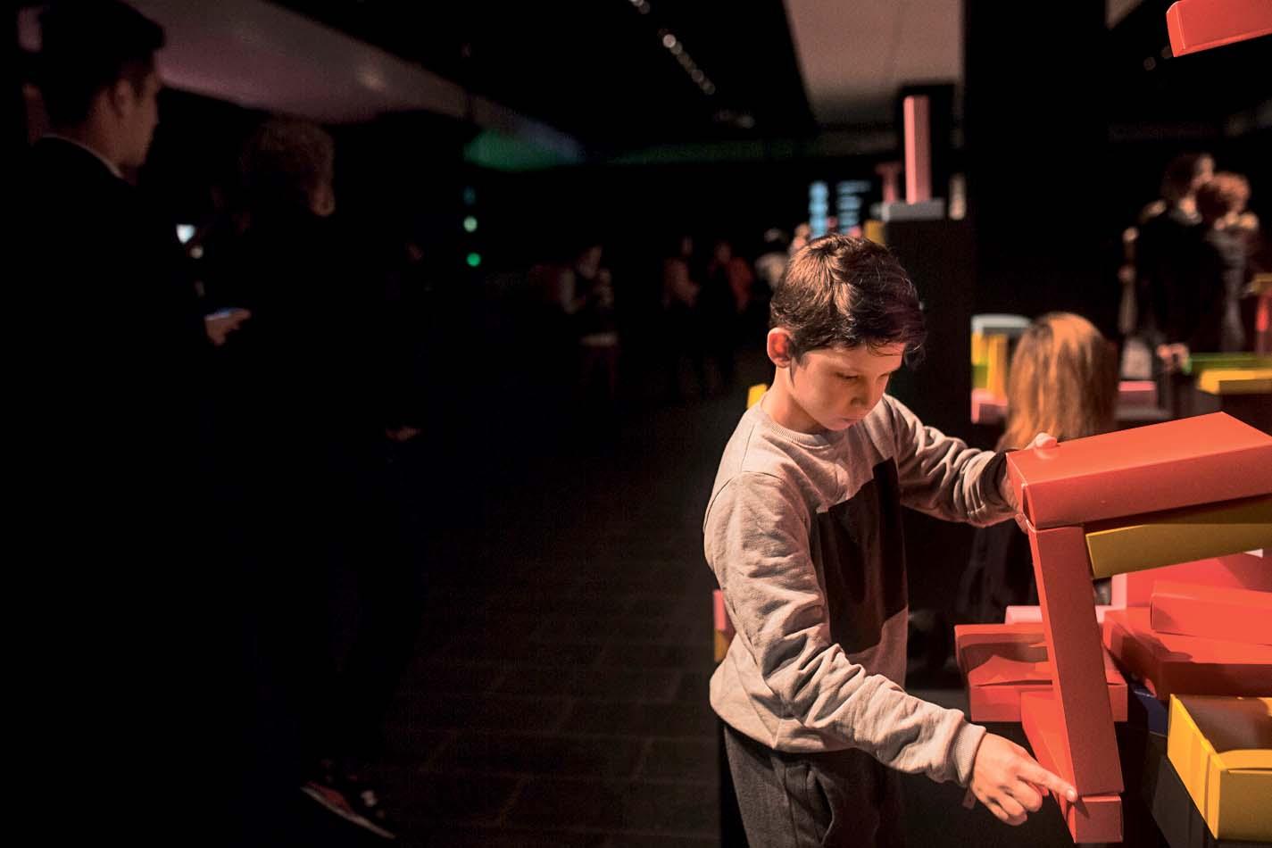 Коупленд задумал провести открытый эксперимент по коллективному созданию урбанистического ландшафта. Пространство выставки художник разделил на шесть сцен, каждую из которых обозначил разными цветами, наполнил десятком вдохновляющих деталей и заселил танцующими персонажами. Ковбои, ученые, космонавты и другие герои раскрашивали и передавали зрителям картонные бруски. Именно из них посетители интерактивного перформанса конструировали образ будущего прямо в центре зала.
