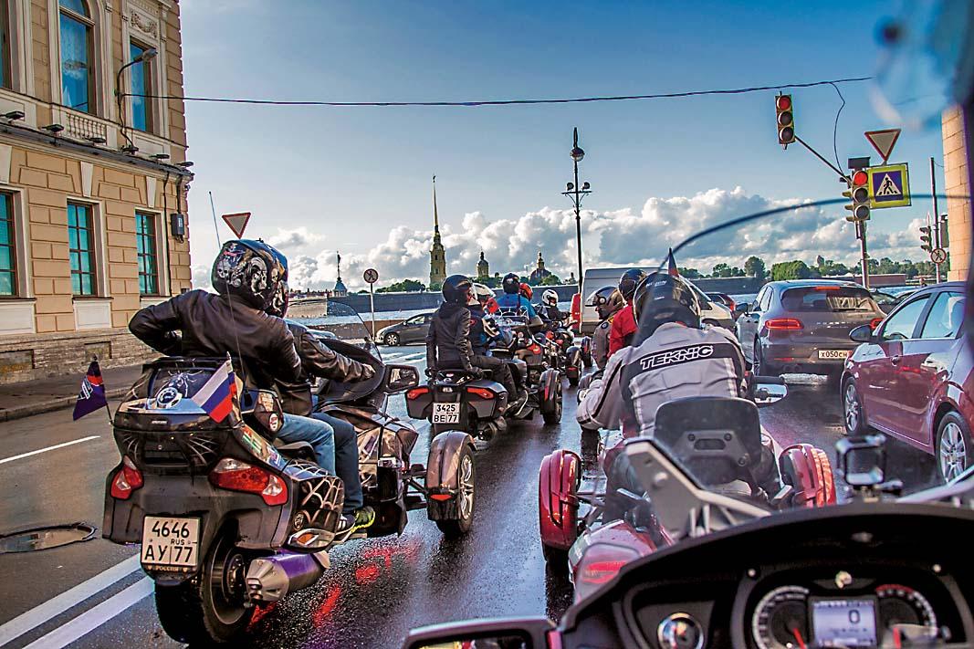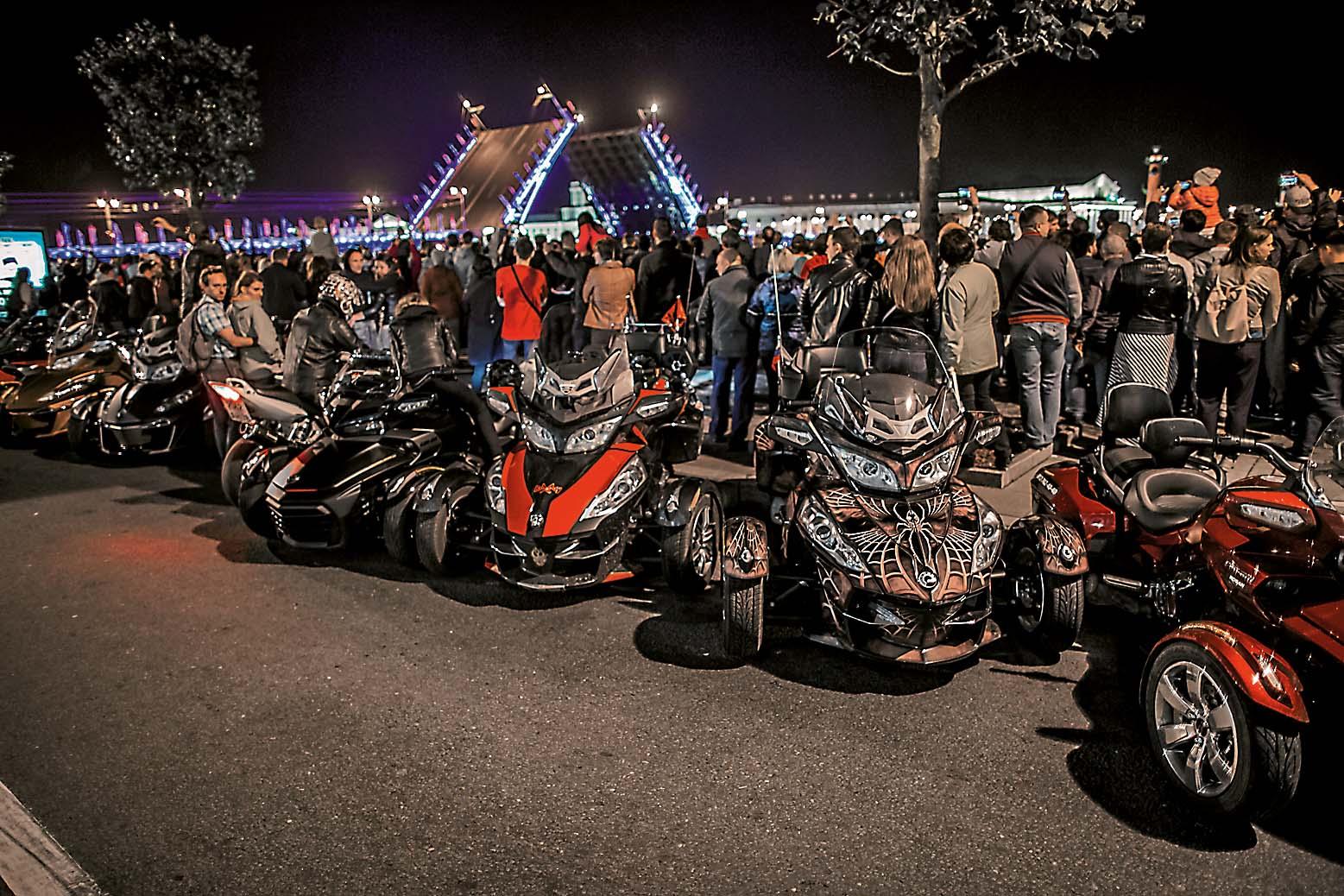 Питер сложно чем-нибудь удивить – этот город насыщен необычными домами, неординарными людьми, загадочными историями. Однако участники ежегодного слета владельцев Can-am Spyder все время приковывали к себе внимание. Еще бы, такая необычная техника всегда вызывает интерес, а если едет целая колонна, то особенно! Приехали люди из разных городов – Москвы, Костромы и, разумеется, Санкт-Петербурга. Добирались своим ходом – Can-am Spyder отлично подходит для путешествий.