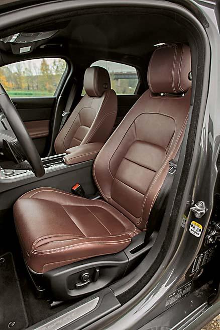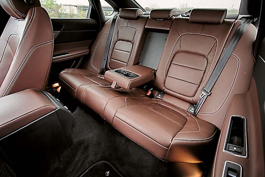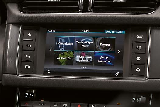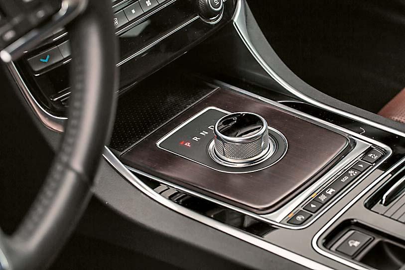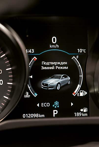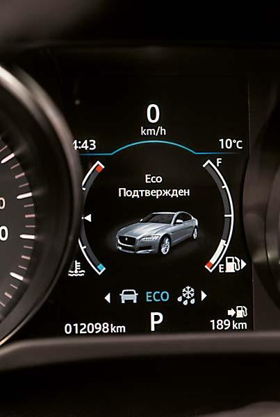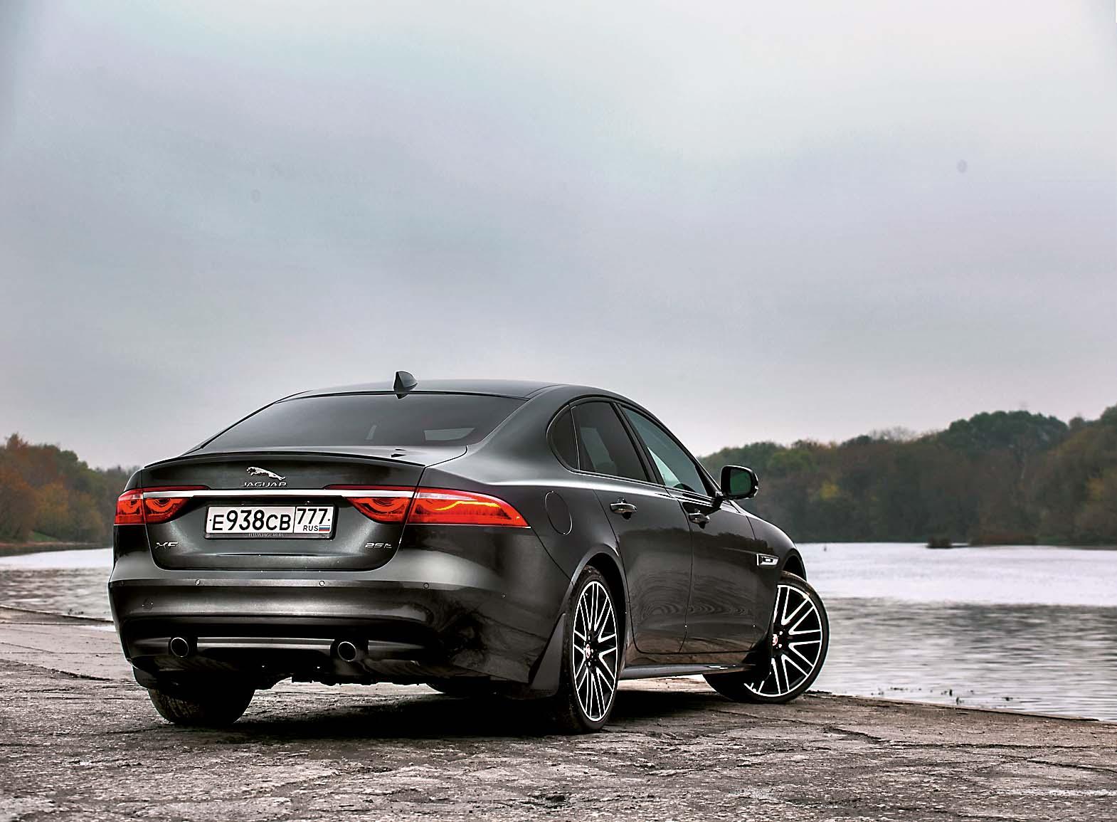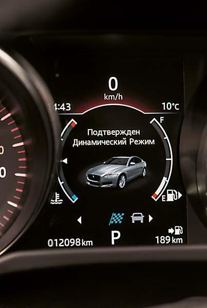 Без боевого настроя садиться за руль XF – бессмысленно. Особенно, если автомобиль с пакетом R-sport, как наш тестовый экземпляр. Это исполнение подразумевает не только украшательства в виде табличек и шильдиков, но и спортивную подвеску с более жесткими настройками пружин и демпферов. И не забудьте прибавить к этому огромные 19-дюймовые колеса с низкопрофильной резиной. Со всем этим набором автомобиль нервно реагирует не только на рябь и трещинки на асфальте, но и на толстый слой краски дорожной разметки. Комуто потеря в комфорте может показаться слишком большой расплатой за отточенную управляемость. Однако те, кто ценит в автомобилях умение ездить, будут в восторге. А то, что 240-сильная наддувная «четверка» под капотом седана обладает слегка старомодным характером – тоже не помеха. Небольшой провал тяги на низах с легкостью компенсируется ловкой работой восьмиступенчатого автомата ZF. Правда, чтобы XF показывал свой темперамент, настройки пары мотортрансмиссия необходимо перевести в режим dynamic. Тем более, что даже в этом режиме автомобиль не проявляет какого-то уж повышенного аппетита. Конечно, ожидать чудес или побед в эко-ралли от огромного заднеприводного седана бизнес-класса не стоит. Но то, что средний расход в смешанном цикле можно уложить в 10 л – проверенный факт! У нас же он вплотную подкрался к 11 л лишь из любви автора этих строк к эффектным стартам со светофоров.