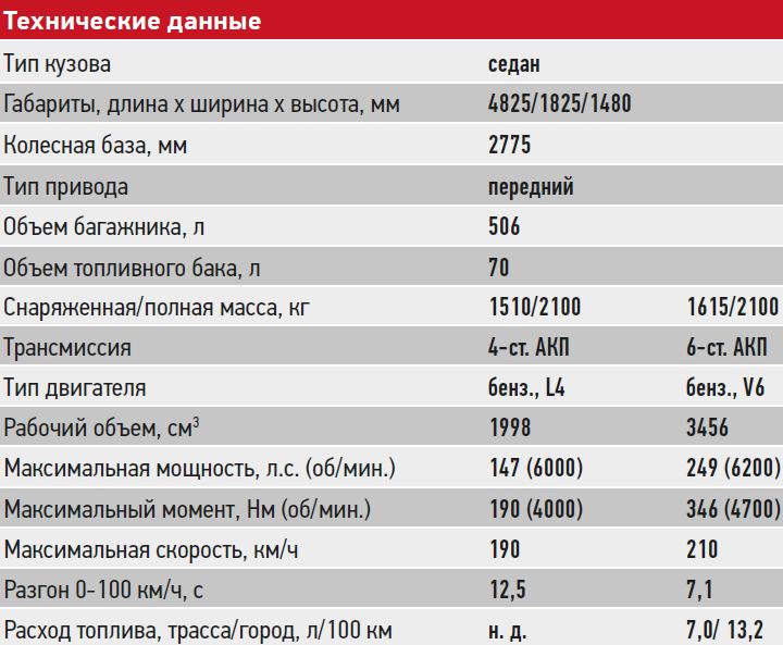 Сегодня седан предлагают с тремя моторами на выбор объемом 2,0, 2,5 и 3,5 литра практически прежней мощности. В качестве трансмиссии идет безальтернативный 6-ступенчатый автомат. Цена нового автомобиля (базовая версия) стартует с отметки 1 364 000 рублей. Топовая версия с V6 стоит 1 960 000 рублей.