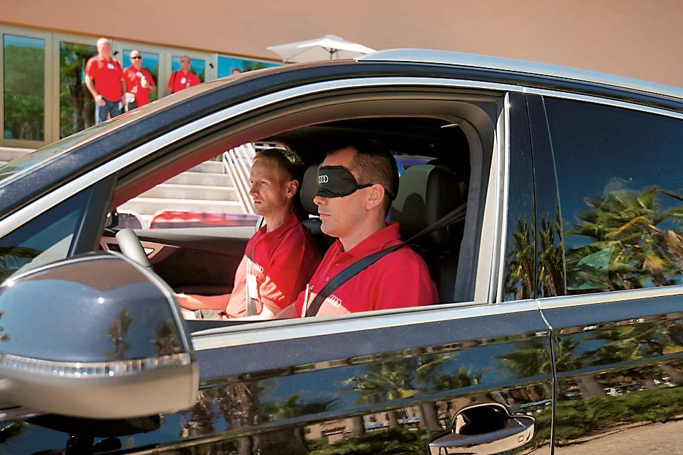 Пришлось командам пройти и полушуточные проверки. К примеру, одному из участников с не пропускающей свет повязкой на глазах надо было припарковать автомобиль, руководствуясь лишь помощью электронных ассистентов. С этим заданием справились далеко не все. Хорошо, что в ходе эксперимента ни один автомобиль Audi не пострадал – подстраховали системы безопасности, которые помогли избежать столкновения.
