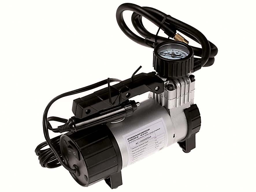 Лот первый – компрессор CHAMELEON AC-130. Надежен, компактен, очень тихо работает и стоит недорого, в районе 1300 рублей. При этом качает 23 л в минуту и нагнетает максимальное давление до 10 атмосфер.