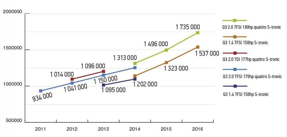 Самых экономных Q3 разочарует стоимостью колодок и тормозных дисков. Тормоза служат на совесть, но более 5000 руб. за передние колодки и порядка 3500 – за задние, и тормозные диски по 12 000 (спереди за пару) и 10 000 соответственно за задние, выглядят просто вызывающе.