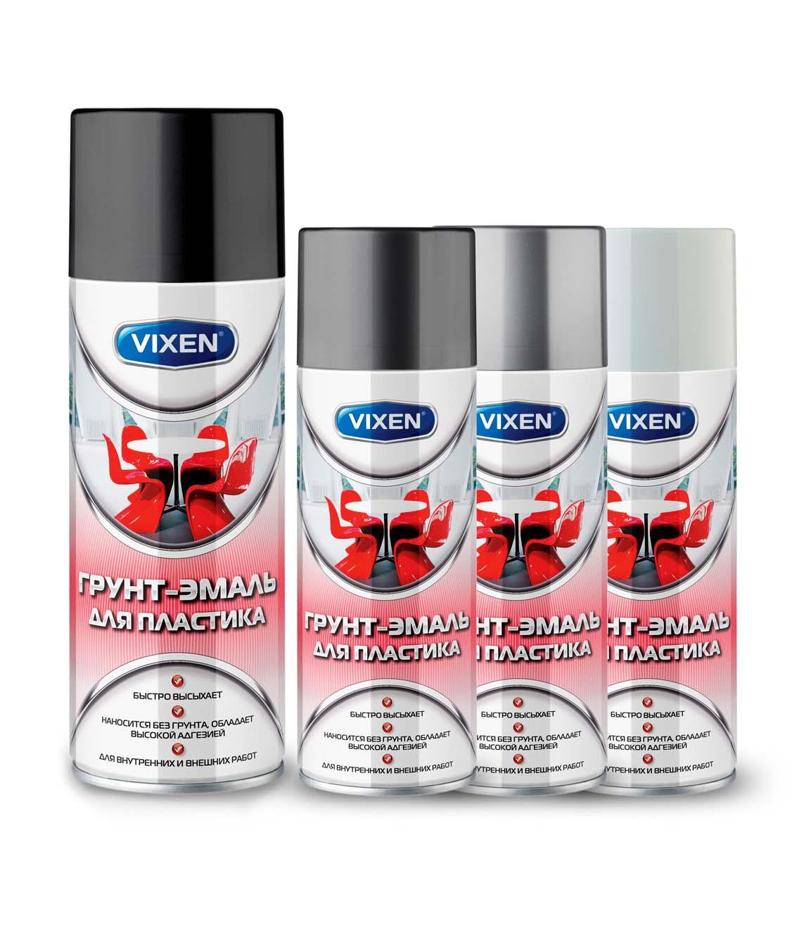 Множество пластиковых изделий окружает нас не только в автомобиле, но и в быту. К сожалению, они обладают нехорошей особенностью покрываться царапинами – теряют, таким образом, свой первоначальный внешний вид. К счастью, современные материалы позволяют обновить пластиковые поверхности в домашних условиях. Например, грунт-эмаль для пластика VIXEN позволяет окрашивать любые пластики и при этом не требует предварительного грунтования. Ее отличает превосходное сцепление с поверхностью даже при окрашивании гладких пластиков. Эмаль быстро высыхает, образуя прочное покрытие, устойчивое к механическим и атмосферным воздействиям. Образуемое покрытие не выгорает на солнце, не трескается и сохраняет эластичность даже в условиях низких температур. Так что использовать грунт-эмаль можно не только в автомастерской, но и в быту для окраски всевозможных пластиковых поверхностей. Грунт-эмаль для пластика VIXEN обладает повышенной укрывистостью, благодаря чему расходуется очень экономно. Продается в аэрозольных баллончиках, что позволяет равномерно окрашивать изделия со сложной геометрией, а также прокрашивать труднодоступные участки. Может использоваться для внешних и внутренних работ. Выпускается в четырех наиболее востребованных цветах: черном, графитовом, сером и белом.