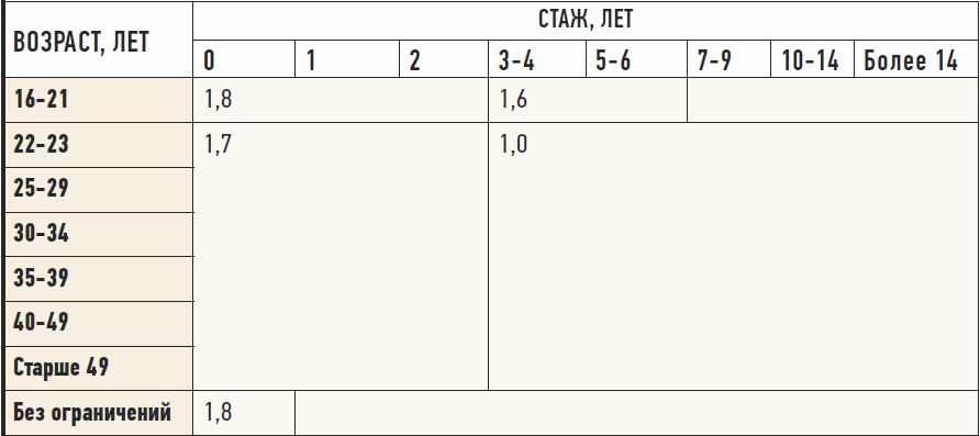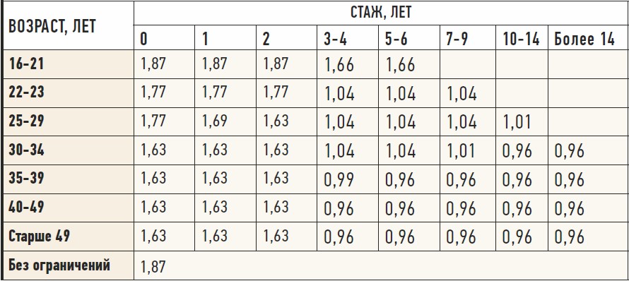 Какие повышающие коэффициенты в зависимости от возраста и стажа водителя действуют в ОСАГО сейчас