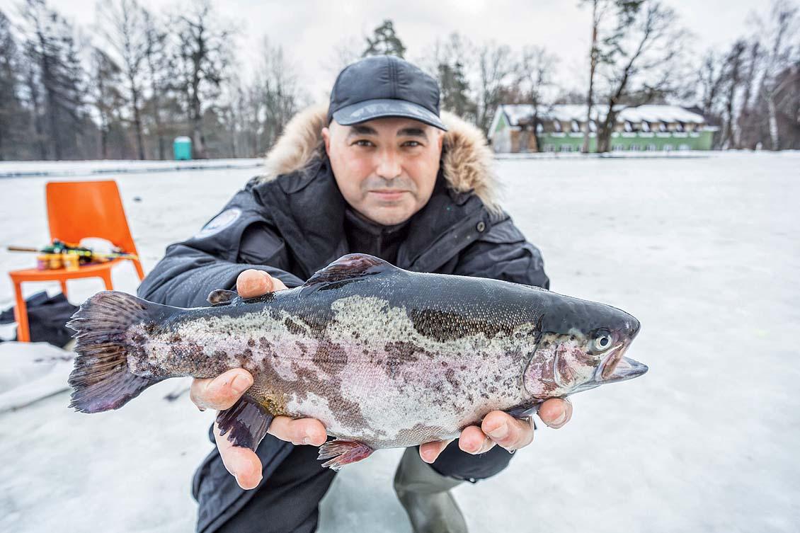 Побегать между лунками пришлось изрядно. Хоть и за деньги, но рыбка клевать не торопилась. И поэтому первый (он же последний) трофей, который еле пролез в лунку, вызвал облегчение. Уедем не с пустыми руками! Как назло, в самый ответственный момент у фотографа села батарейка. И пока фототехнику приводили в чувство, хищник, что на фото внизу, лежа на снегу пошел пятнами, утрачивая на глазах удивительный радужный перламутр.