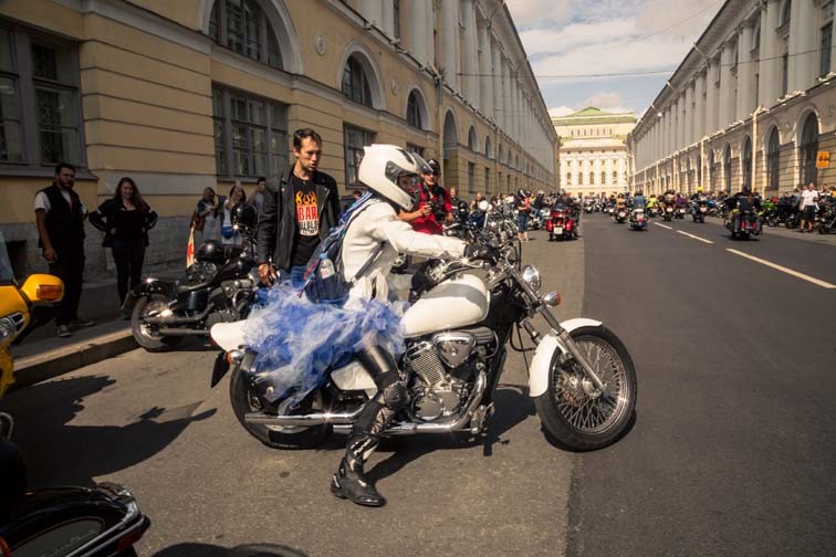 Грандиозный мотопробег стартовал на Дворцовой площади. Колонна из четырех тысяч мотоциклов легендарной марки проследовала через весь город. Движение автомобильного транспорта пришлось по такому случаю перекрыть. Но недовольных не было – водители, вынужденные остановиться ради пробега, приветствовали мотоциклистов гудками, махали руками вслед и, разумеется, снимали все действо на камеры мобильных телефонов.