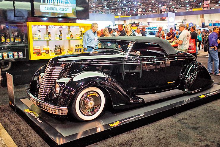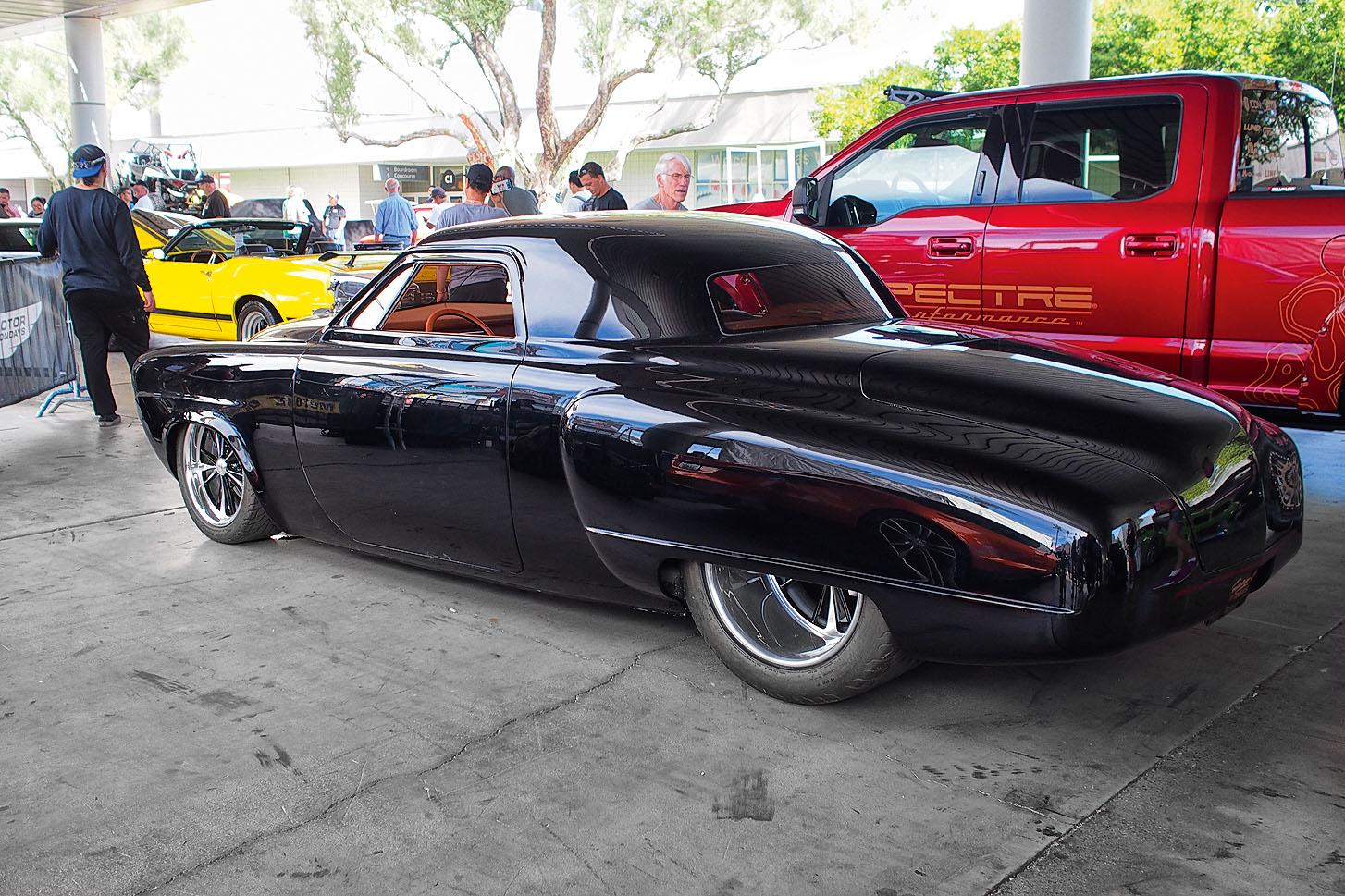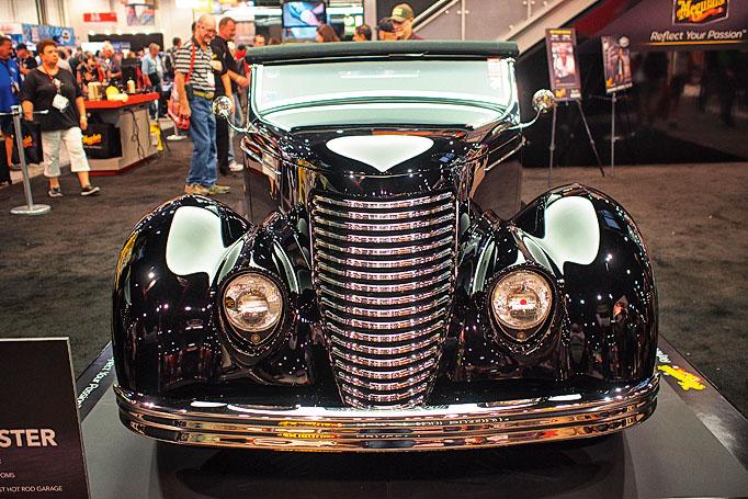 Один из самых элегантных автомобилей SEMA Show в этом году – хот-род на базе Ford Roadster 1936 года выпуска. Низкая крыша, мощная хромированная решетка радиатора, скрытые задние колеса, уникальный черный цвет кузова. Все это создает неповторимый образ хот-рода.