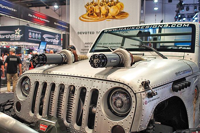 Любимая модель у американских мастеров тюнинга на SEMA Show. Большими колесами, силовыми бамперами, даже установленным на внедорожник жилым модулем мало кого в Лас-Вегасе можно удивить, а вот два пулемета на капоте точно никого не оставят равнодушным. Благо, что это всего лишь макеты, которые просто очень похожи на настоящее оружие!