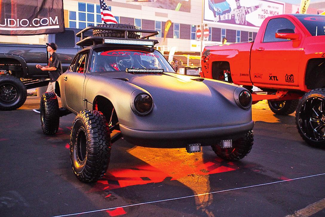 Если у вас есть старенький Porsche 911 в кузове 964, а хочется ездить по бездорожью, то при помощи фантазии и несложных манипуляций можно превратить классический немецкий спорткар в бескомпромиссный багги. По крайне мере так сделали одни участники крупнейшей выставки тюнинга в Лас-Вегасе.