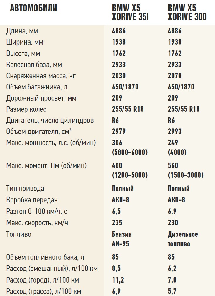 Кроссовер с заводским обозначением F15 продавали у нас с 3,0-литровыми «турбошестерками»: 306-сильной бензиновой и дизелем мощностью 218, 249, 313 или 381 л.с., а также с 4,4-литровыми V8 (450 и 575 «сил» для М-версии). Дилеры предлагали машины калининградской сборки, только с полным приводом и 8-ступенчатой АКП. Самые мощные и дорогие версии везли из Америки. А вот 2,0-литровые модификации к нам официально не поставляли. Х5 с «четверкой» под капотом – у нас нонсенс.