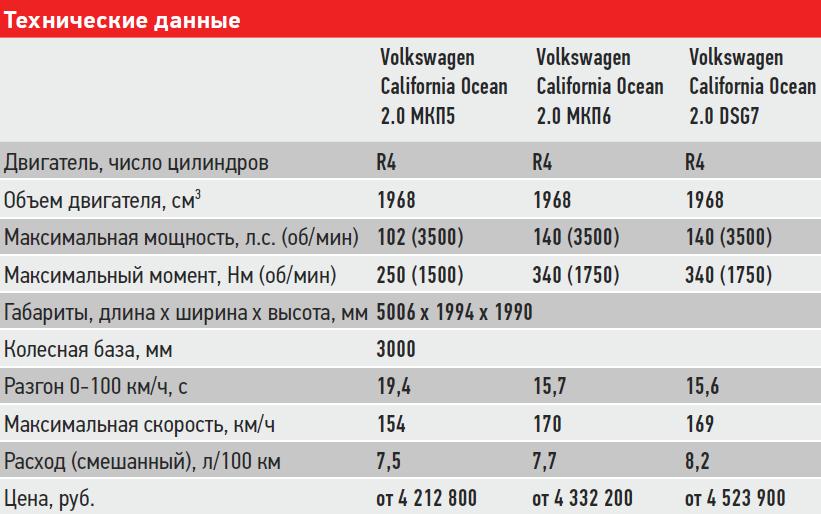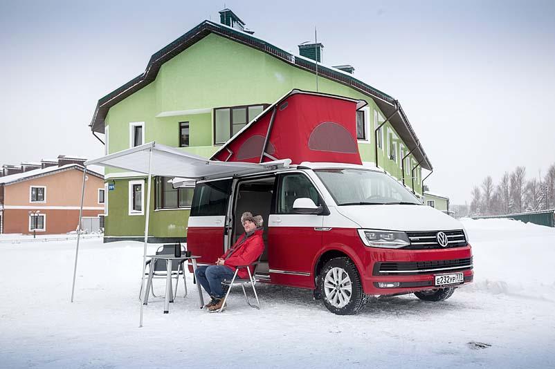 А доехать California может много куда. Полный привод здесь опционален, но для такой машины он необходим – вдруг жажда приключений заставит свернуть с асфальта и отправиться в манящую неизвестность? С легким бездорожьем «Калифорния» справляется играючи, засыпанные снегом московские дворы и загородные лесные дорожки для машины не преграда. Посадка за рулем больше «грузовая», что обусловлено родословной машины – несмотря на все «навороты» это по-прежнему Volkswagen Transporter. И едет California почти так же, подпрыгивая кормой на неровностях и неспешно разгоняясь. Тестовая машина – с самым мощным в линейке дизельным мотором с отдачей в 180 л.с., но при разгоне чувствуется, что мощности трехтонному вэну не хватает. Зато потребляет двигатель не больше 10 л дизтоплива на 100 км даже в городских условиях.