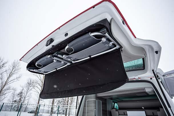 В идеале, California рассчитана на четырех искателей приключений. На заднем диване усядутся и трое, но им будет не слишком удобно. Кроме того, в минивэне четыре спальных места: сложив спинку сиденья, можно превратить заднюю часть машины в кровать для двоих, столько же взрослых поместится в палатке на крыше. Именно палатка – главная «фишка» California. Механизм раскладывания – полностью электрический, а входом в палатку служит широкий люк над креслами водителя и пассажиров. Внутри места не то чтобы очень много, но жаловаться на это язык не повернется. В конце концов, какая еще машина может предоставить вам возможность любоваться звездным небом практически в любом уголке земного шара, куда может доехать автомобиль?