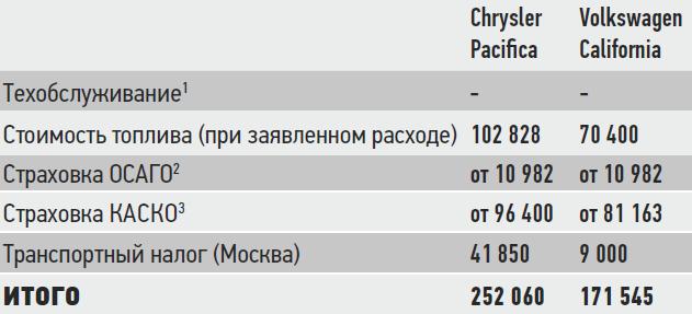 1 Точная стоимость и регламент ТО Chrysler Pacifi ca у дилеров на момент сдачи номера в печать были неизвестны. Стоимость ТО для California при расчете также не учитывалась