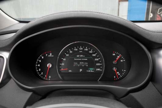 В тактильном и акустическом комфорте в Sorento Prime как раз проявляются те самые премиальные амбиции. Быть может, в этом классе подобная тишина и нега – уже норма? Дизайн и приборы не выглядят богато и слишком технологично. Однако быстро оцениваешь правильное породистое «причмокивание» закрывающейся двери, отделку, нитки прошивки, накладки в салоне, благородный звук акустической аудиосистемы Harman Kardon c внешним усилителем, сабвуфером и 8 динамиками (для топовых версий). Внушают уважение ловкость и четкость срабатывания монитора 8-дюймовой медиасистемы.