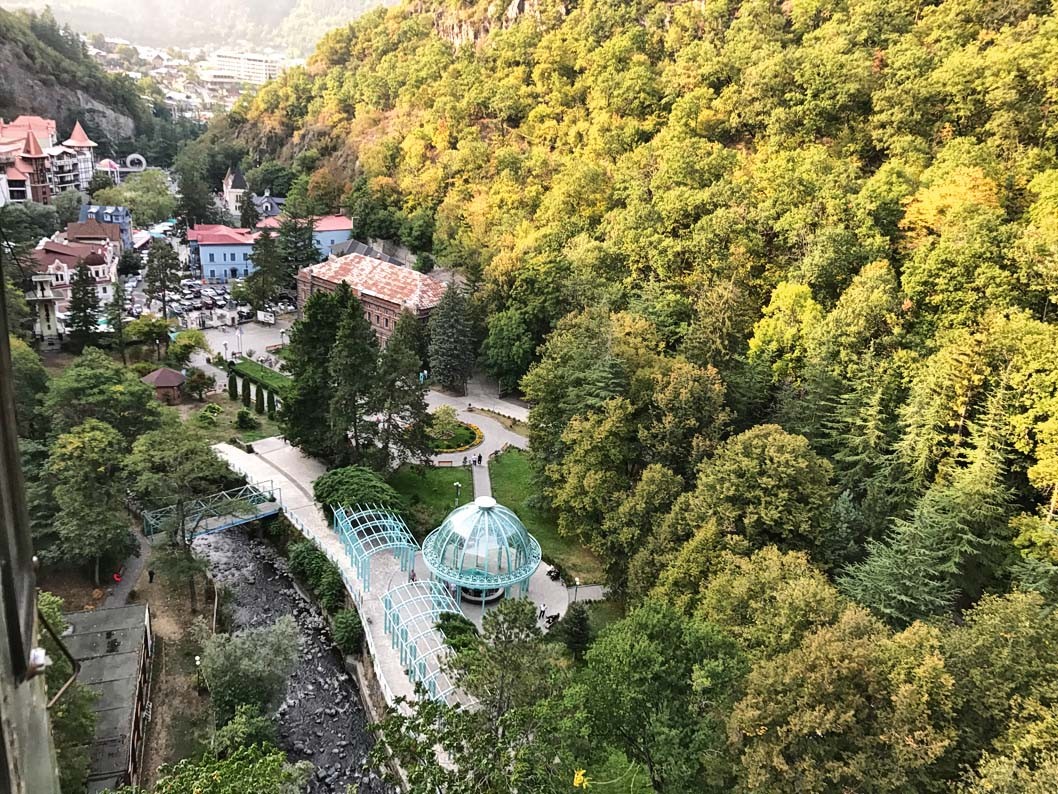 Следующая остановка – Боржоми. До площадки аттракционов на горе можно добраться по канатной дороге. Но лучше сперва прогуляться внизу, а потом доехать на внедорожном такси до конца лесной тропы, чтобы искупаться в бассейне с лечебной водой. Вход, разумеется, платный. Кухня, кстати, все меньше напоминает пляжную: число приличных мест вырастает в разы.