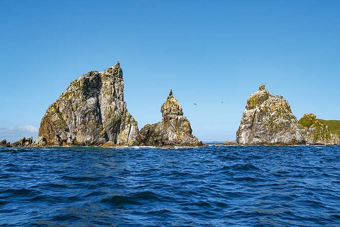 По дороге обратно в сторону Владивостока стоит сделать еще одну остановку на пару дней – на острове Путятина в заливе Петра Великого. Это уникальное по красоте место и излюбленное направление туристов для отдыха с палатками: пляжи, скалы, озеро лотосов, пешеходные тропинки, проложенные по сопкам. От Находки до переправы, которая находится в поселке Дунай, 75 километров. На пароме до острова – около 20 минут. В сезон есть дополнительные коммерческие рейсы, они немного дороже. На паром помещается не более 4 машин, поэтому место нужно забронировать заранее. Переправа в сезон стоит 2700 рублей (туда-обратно). Кстати, ребята из «Б.А.Р.С.» (Бюро Активности, Развлечений и Спорта) организовывают здесь обустроенный кемпинг с питанием – очень удобно. А еще можно договориться с катером или купить экскурсионный тур, и тогда вы объедете остров с воды и увидите лежбище сивучей и нерп.