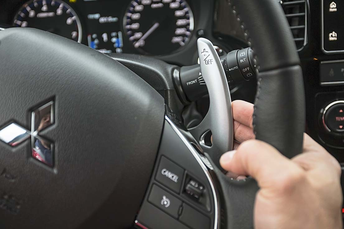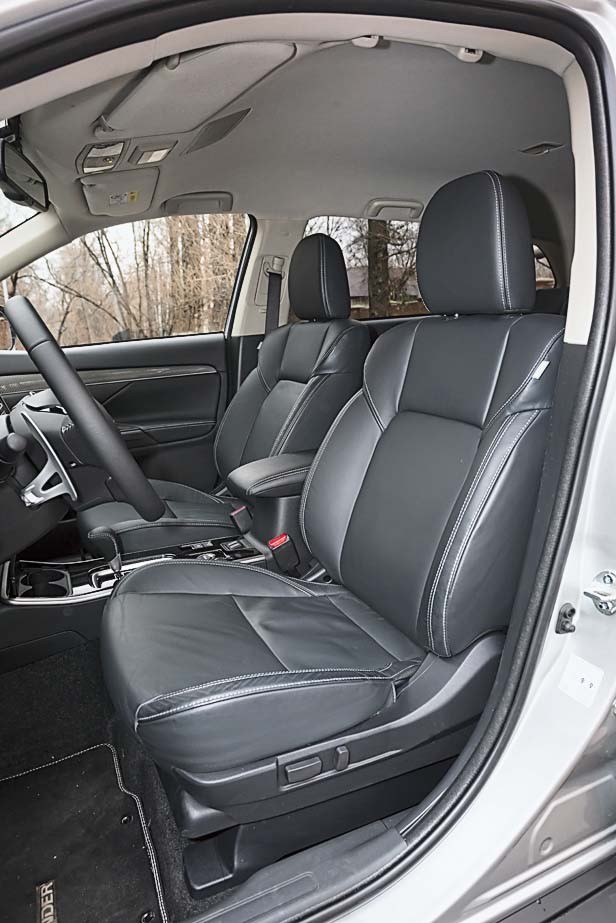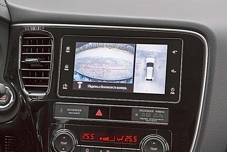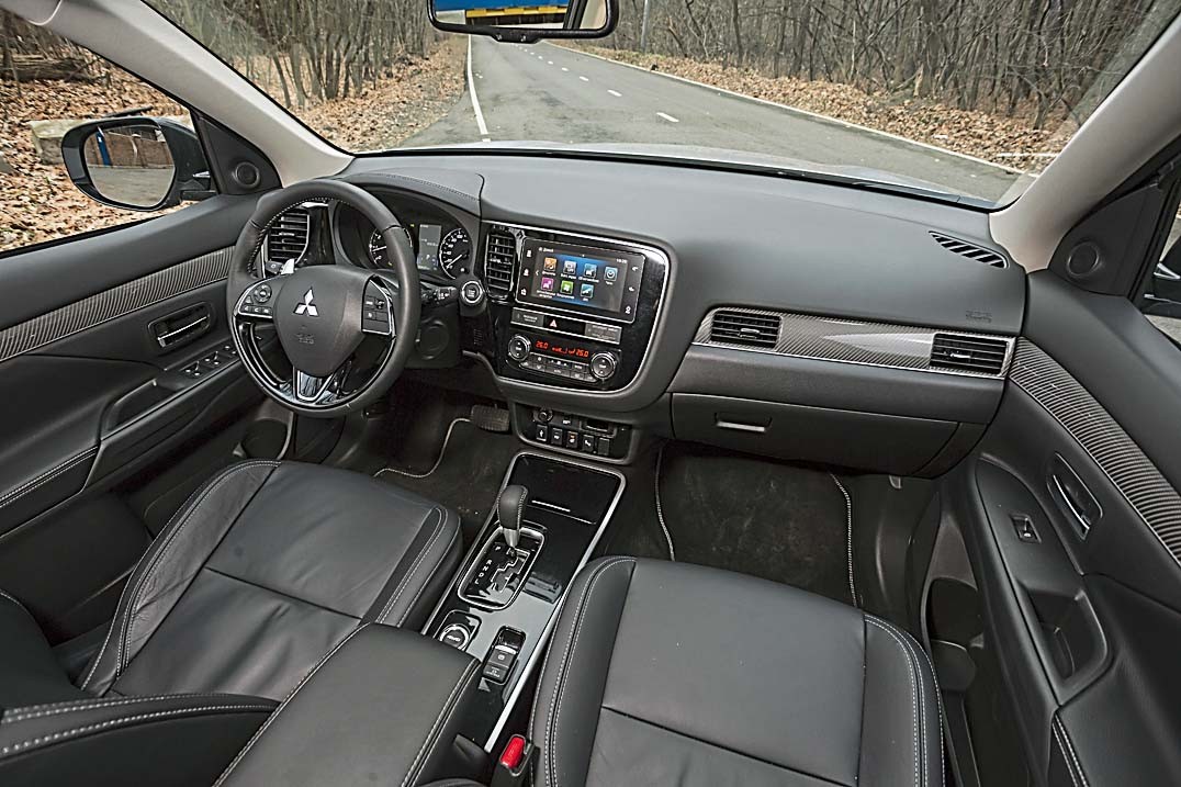 Оutlander внутри по-домашнему уютен, как бы расслаблен, но, увы, менее аккуратен и внимателен к деталям. Ярко-оранжевая подсветка пульта климат-контроля спорит с бело-синими шкалами основных приборов. Кнопка меню бортового компьютера почемуто прячется слева за «баранкой», а те, что отвечают за электропривод двери багажника и его блокировку, странным образом расположены не рядом, а по разные стороны от рулевой колонки. И хотя обновленные, получившие более развитую боковую поддержку кресла вполне удобны, диапазон регулировки руля по вылету маловат. Приходится двигать сиденье вперед, больше сгибая колени. Что не очень удобно.