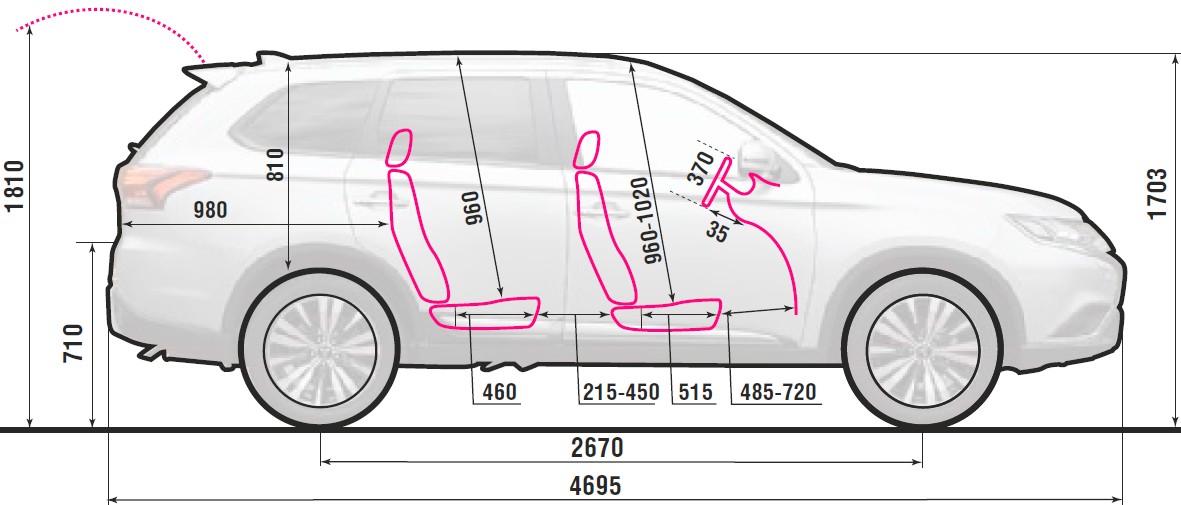 Колесная база у обоих – 2670 мм, но из-за большего заднего свеса Outlander на 110 мм длиннее