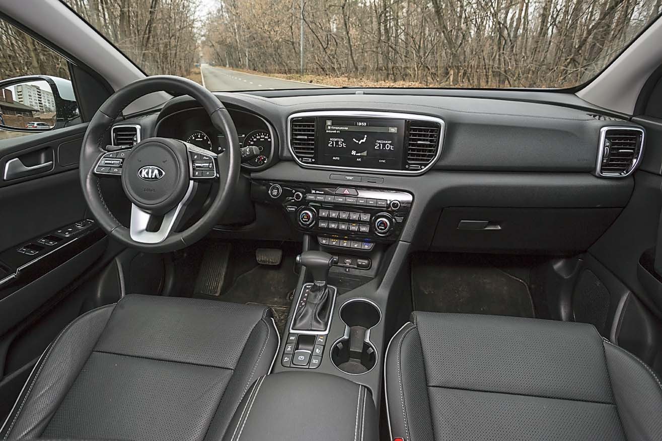 На ровном асфальте Sportage кажется ловчее. Он чуть ниже, жестче, благодаря чему воспринимается более острым и аккуратным в управлении. И новый мотор в этом контексте не лишнее звено. Не сказать, что 184-сильный агрегат превращает Kia в спортсмена, но дает не доступные с базовым двигателем ощущение легкости и добротный запас тяги для обгонов на трассе.