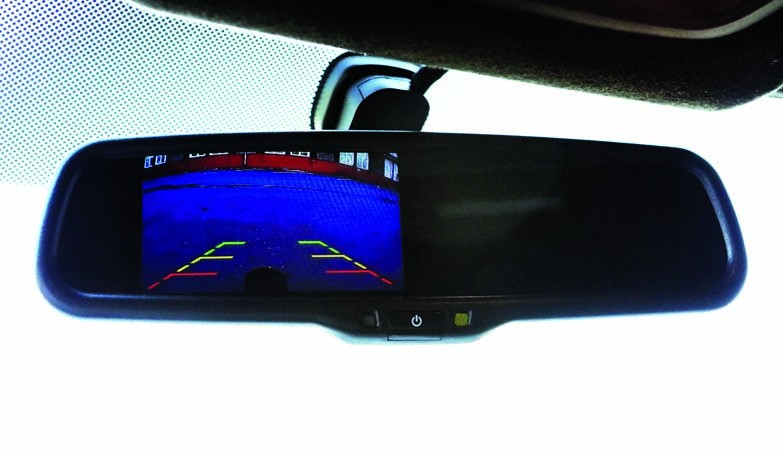 Изображение с камеры заднего вида выводится на салонное зеркало. Картинка небольшая, но достаточно четкая. Эта полезная опция есть только в двух самых дорогих комплектациях автомобиля