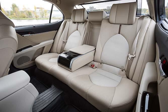 Главный козырь Camry прячет, нет, не в рукаве, а на заднем ряду! Здесь все почти как у взрослых. В центральном откидном подлокотнике спрятан полноценный пульт управления функциями комфорта. Пассажирам дали возможность регулировать угол наклона спинок, устанавливать подходящую температуру и включать обогрев сидений. А кроме того, на окнах и на заднем стекле есть шторки. Причем поднимать или опускать заднюю шторку пассажиры второго ряда могут кнопкой, расположенной все на том же пульте управления в подлокотнике. Но за возможность ездить с комфортом во втором ряду придется дорого заплатить – спинки сидений сложить нельзя. То есть владельцу Toyota Camry придется довольствоваться «базовыми» 469 л объема. Да и вообще багажный отсек «Камри» оформлен менее практично и качественно. Словно эта часть автомобиля и не важна вовсе. А все мы знаем, что это совсем не так.