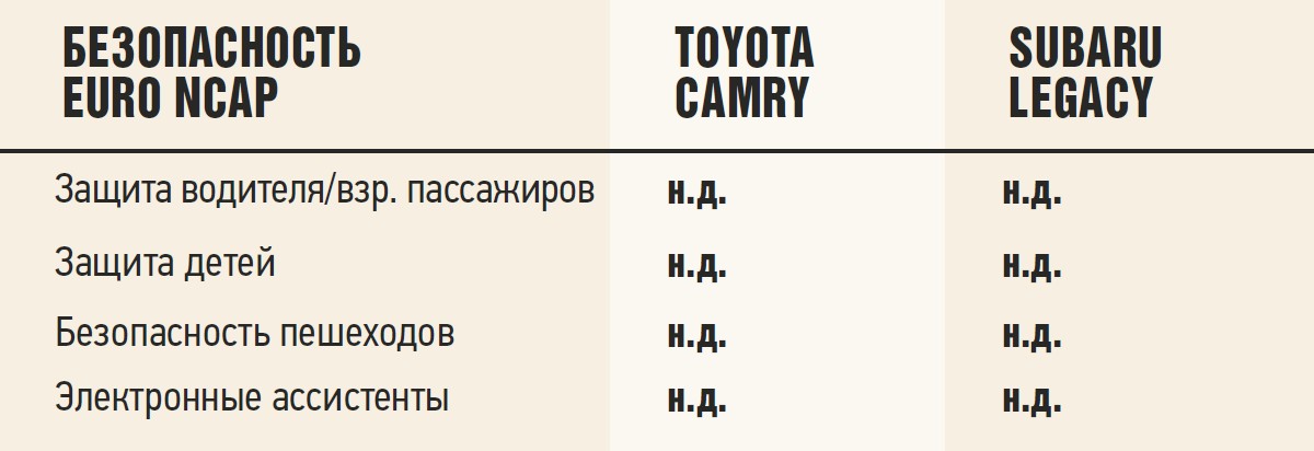 Уход с российского рынка сильно ударил по имиджу Legacy. Возвращение в строй не будет легким. Тем более что Legacy все же недостает столь важных для нашего покупателя качеств. А это – невысокая входная цена и утилитарность. Subaru упорно продолжает хранить свои основополагающие ценности – спортивность, динамичность и управляемость, не особо обращая внимания на веяния моды. И это особенно заметно по тому, как оформлен интерьер Legacy – добротно, немного старомодно и без малейших заигрываний с покупателем. Camry же не без самолюбования смело расчерчивает внутренне пространство замысловатыми линиями и формами. Пускает пыль в глаза. Но забывает при этом, что качество исполнения, эргономика и функциональность все равно должны играть главенствующую роль. И здесь Subaru бьет королеву «Тойоту». Материалы отделки в Legacy и тактильно, и визуально воспринимаются дороже и качественнее, чем у конкурента. Не хватает разве что элегантности.