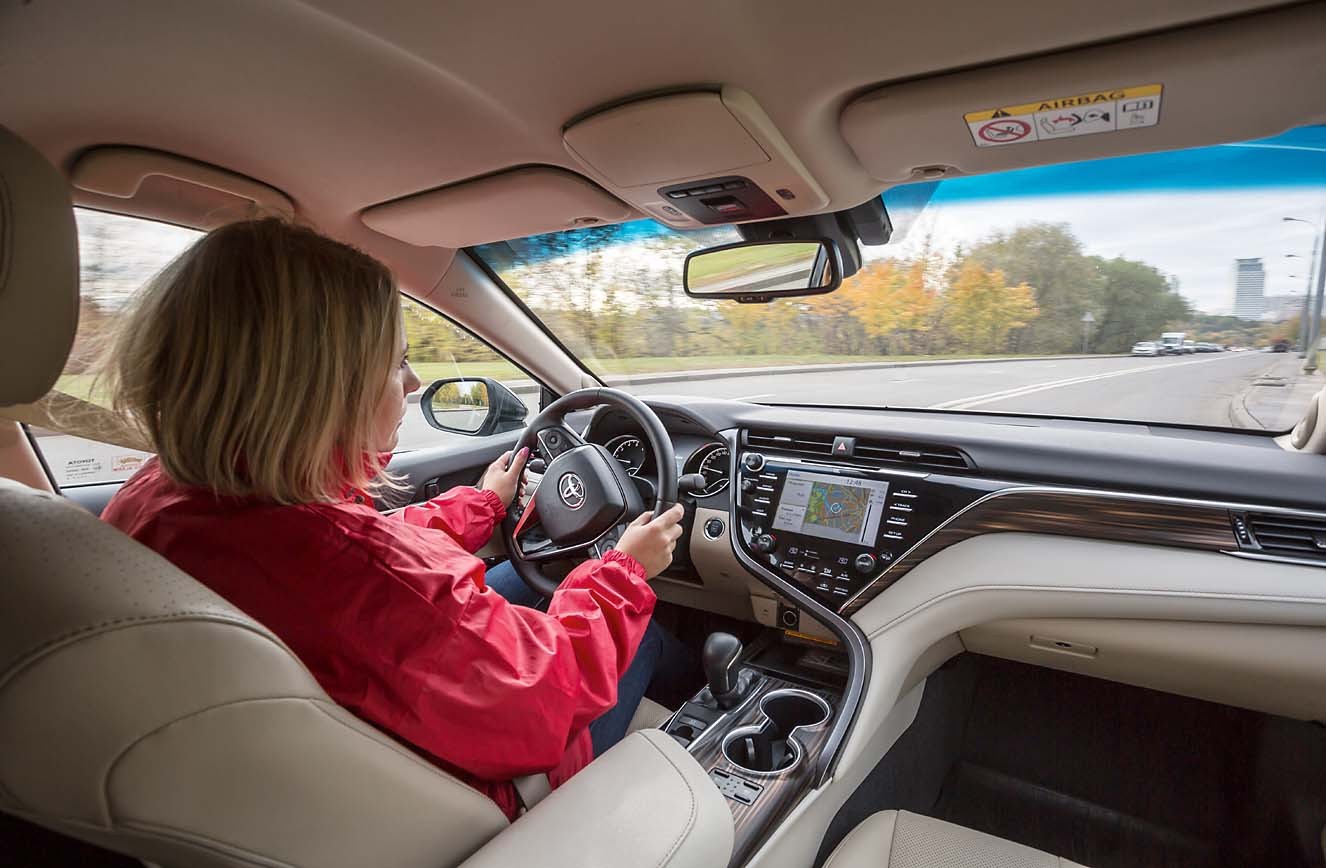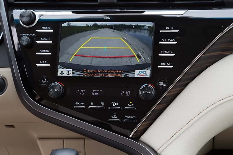 ИЗОБРАЖЕНИЕ С КАМЕРЫ заднего вида в «Камри» хорошего качества. Ориентироваться и парковаться удобно.