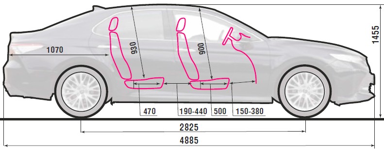 Колесная база Toyota Camry – 2825 мм. Это на 75 мм больше, чем у Subaru Legacy