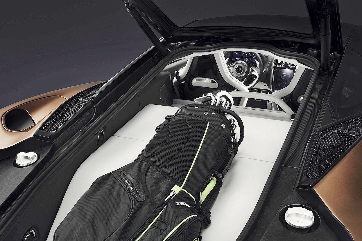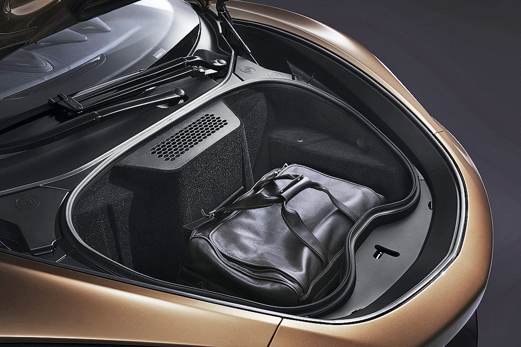 McLaren GT – быстрый, мощный и эффектный автомобиль с поправкой на комфорт каждодневной эксплуатации. Он нацелен на новую аудиторию, которая ищет спорткар, максимально адаптированный для дальних поездок. В основе модели доработанный монокок MonoCell II-T, впервые появившийся на 720S. Во главе угла – пространство салона и... объем багажника! Вместимость отделения над двигателем – 420 л, то есть на 50 л больше, чем у наиболее практичной модели прошлых лет – купе 570 GT. Производитель утверждает, что в угоду объему багажника двигатель и выхлопная система суперкара установлены как можно ниже. Небольшой отсек предусмотрен и в носовой части – за передней осью есть свободное место для компактной сумки. Владельцу наверняка понравится новая информационно-развлекательная система, панорамная крыша с возможностью затемнения, аудиосистема Bowers & Wilkins с 12 динамиками и доступный в качестве опции карбоновый сабвуфер. Конструктивно McLaren GT идентичен модели 720S: под капотом тот же 4,0-литровый 8-цилиндровый мотор, дефорсированный с 720 л.с. и 770 Нм до 620 л.с. и 630 Нм. Однако жесткость опор двигателя снижена в два раза, выхлопная система настроена на более спокойное звучание, а кривая крутящего момента оптимизирована таким образом, чтобы 95% пиковой отдачи было доступно в диапазоне от 3000 до 7250 об/мин.