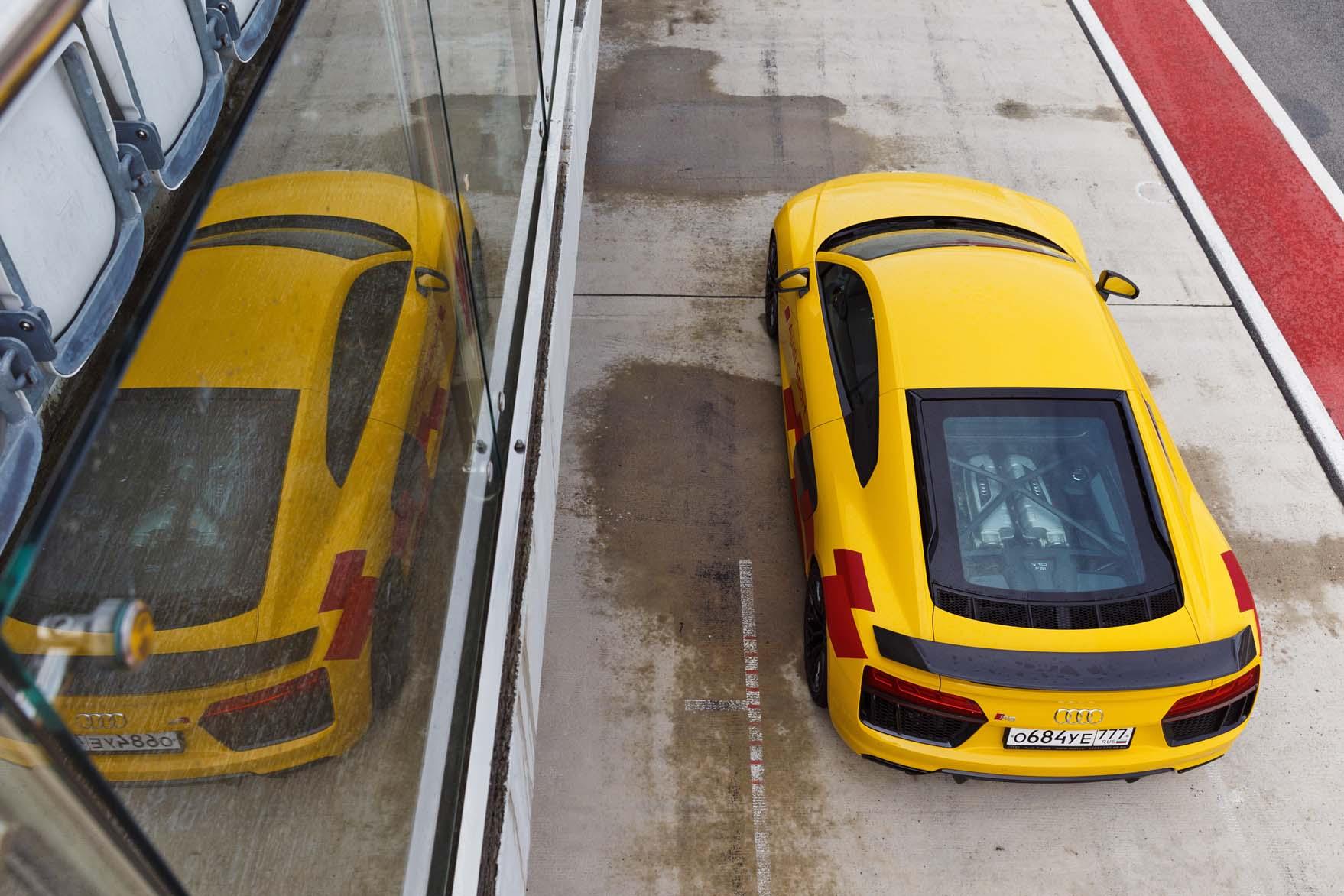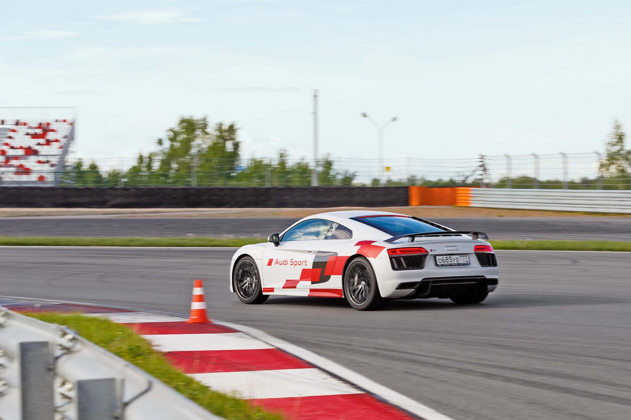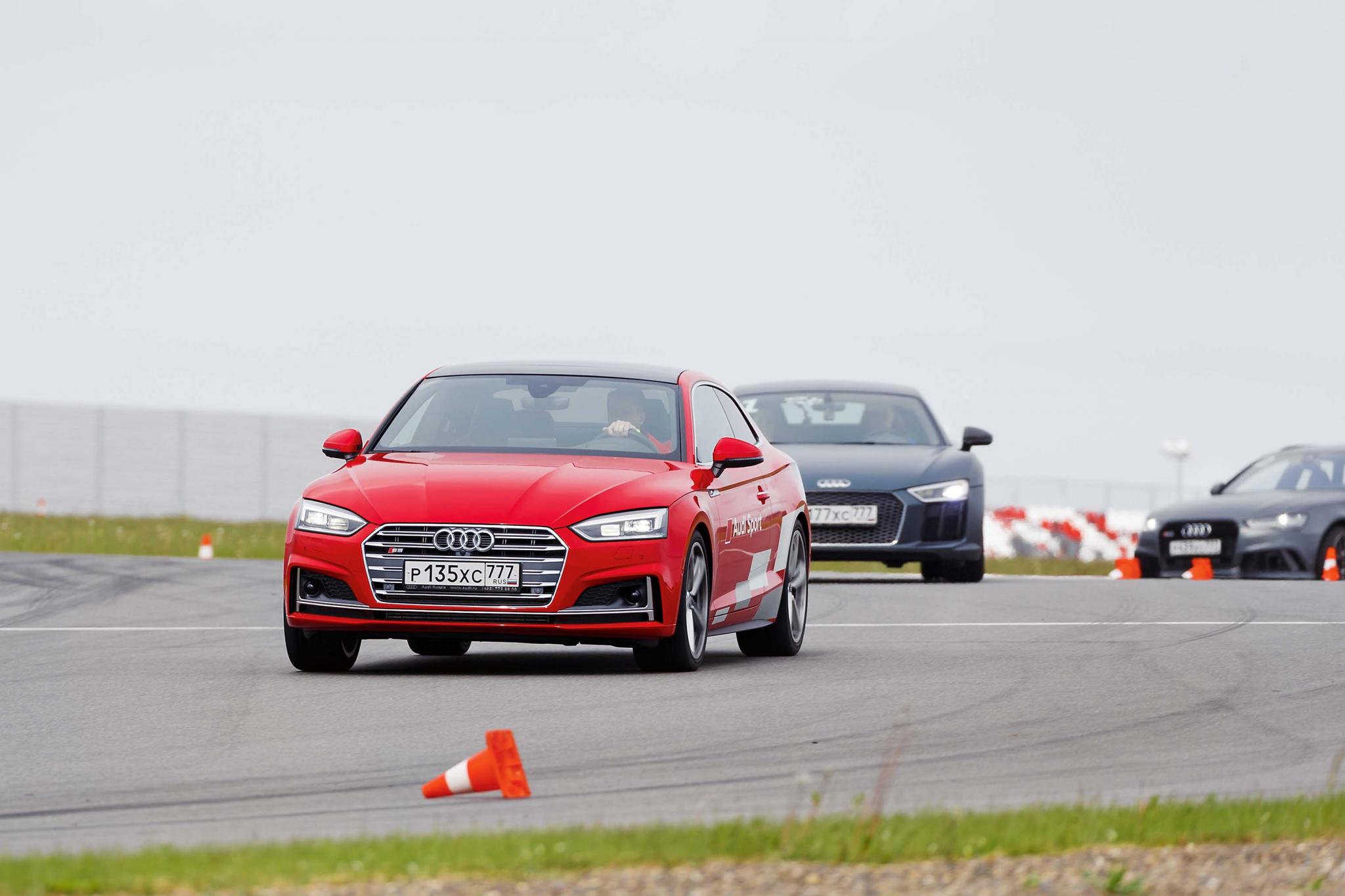 В одни из прошедших выходных компания Audi выкатила на подмосковный Moscow Raceway всю линейку своих спортивных автомобилей – S5, S6, S7, RS 6 Avant, RS 7 Sportback и, конечно, грозный R8. Опробовать их все гостям мероприятия, к сожалению, не дали – на полноценный тест всех моделей пришлось бы арендовать гоночную трассу не на один день. Автомобили разбили на группы по три, и каждый мог выбрать именно ту комбинацию, которая по душе. При этом флагман марки – Audi R8 – присутствовал во всех слотах.