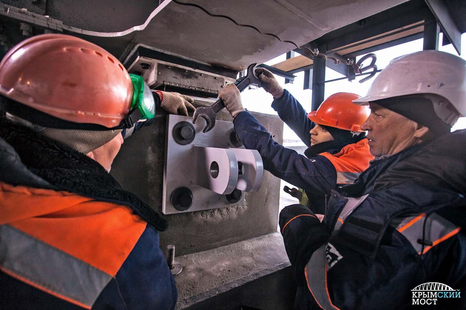 Строители Крымского моста устанавливают под пролеты cооружения антисейсмические устройства. Случись что, выстоит
