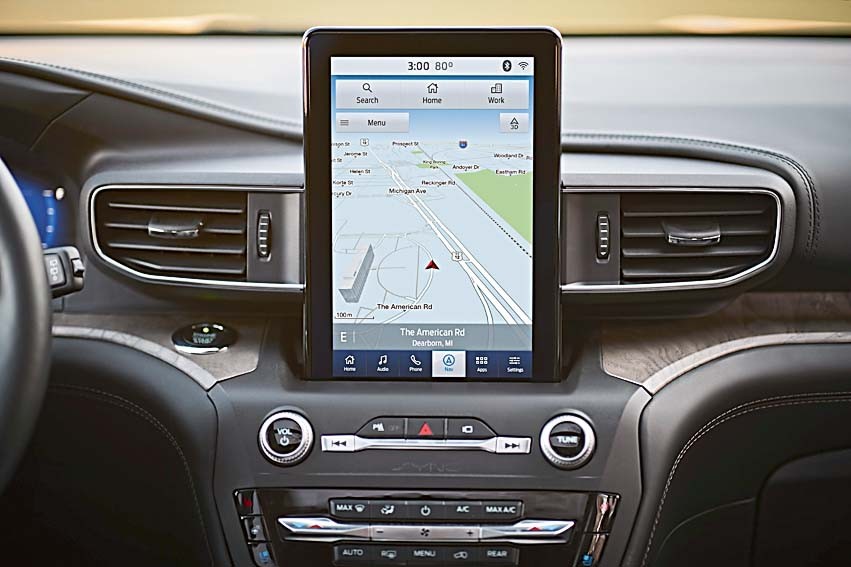 Разумеется, появились у Ford Explorer шестого поколения и новые ассистирующие системы, и продвинутая мультимедиа, и более дорогие и качественные материалы отделки. Список оснащения нового Explorer пополнили адаптивный круиз-контроль с функцией распознавания дорожных знаков, ассистент парковки, внедорожный ассистент движения, навигация с голосовым управлением.