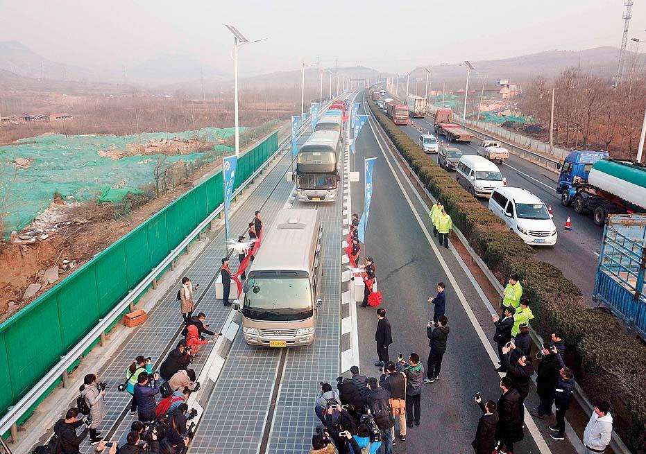 В Китае, в городе Цзинань провинции Шаньдун, на днях торжественно открывали новую автомобильную дорогу, способную вырабатывать электроэнергию. Особого ноу-хау тут нет. Все дело в солнечных батареях, которые и составляют верхний слой дорожного покрытия. Солнечные элементы установлены на участке протяженностью 1,1 км на кольцевой дороге вокруг города. Впрочем, их общая площадь действительно впечатляет – 5,8 тыс. м2. Иными словами, эта магистраль способна собирать электричество для 800 домов.