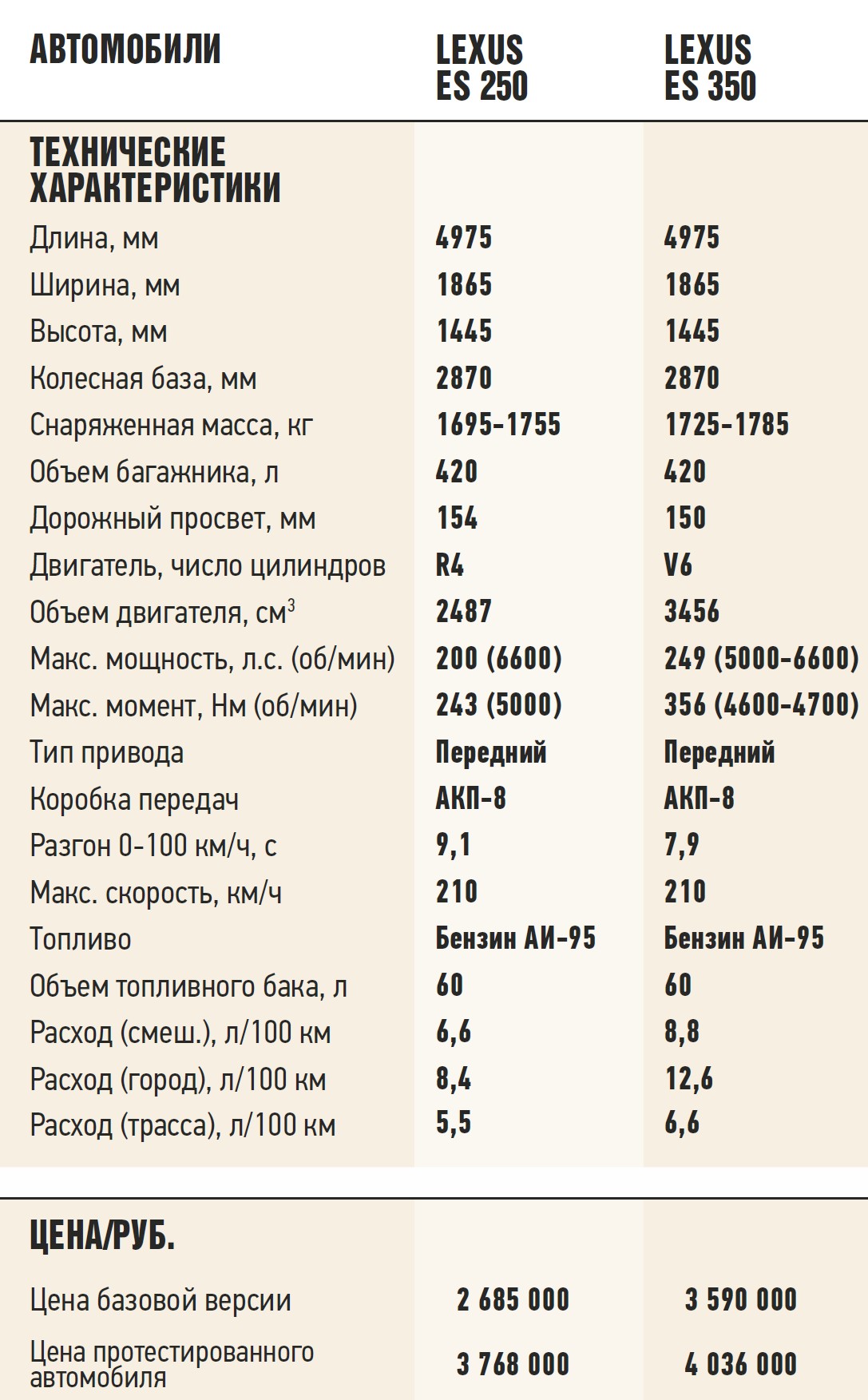 Lexus ES предлагается в России с тремя двигателями мощностью 150, 200 и 249 л.с.