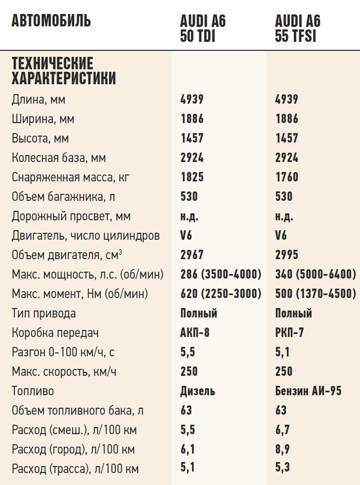 На старте продаж на отечественном рынке предложат две модификации с 3,0-литровыми V6, бензиновым и дизельным. Обе – mild hybrid. Первый – 50 TDI мощностью 286 л.с. – скорее всего дефорсируют до выгодных с точки зрения налогов 249 или 245 л.с. Второй, 55 TFSI, сохранит все свои 340 л.с. Обе версии – полноприводные. Дизелю положена традиционная система привода quattro с самоблокирующимся межосевым дифференциалом, а бензиновая версия получила quattro ultra. Позже нам обещают и версии попроще: с бензиновыми и дизельными «четверками» TFSI и TDI и приводом на передние колеса.
