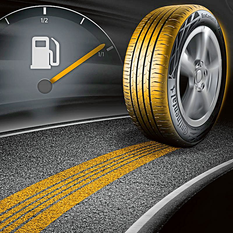 Благодаря жесткой боковине и улучшенной резиновой смеси EcoContact 6 с повышенным содержанием двуокиси кремния удалось добиться НИЗКОГО СОПРОТИВЛЕНИЯ КАЧЕНИЮ, что способствует экономии топлива