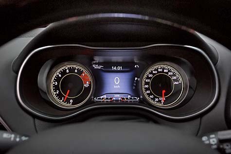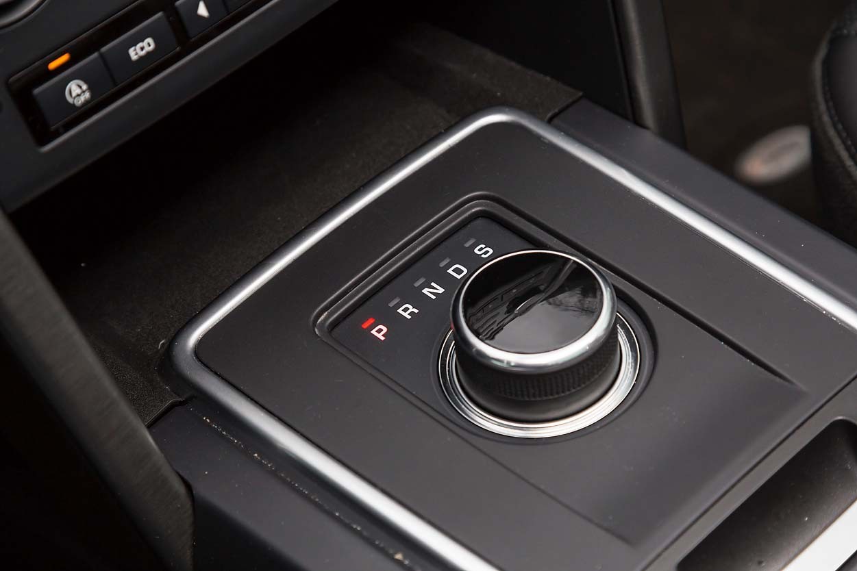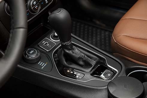 При этом замечу, Jeep на дороге вовсе не беспомощен. Как было сказано выше, его мотору вполне хватает сил для уверенных и безопасных обгонов. Скорость отклика на газ и энергичность ускорений можно повысить, выбрав спортивный режим. Однако от подрулевых переключателей передач пользы немного. Во-первых, они неудобны сами по себе. Во-вторых, электроника автомата реагирует на команды с запаздыванием. Наконец, из-за близости передаточных чисел 9-ступенчатой коробки для более или менее эффективного торможения мотором необходимо скинуть три, а то и четыре ступени вниз. Сделать это быстро не получается.