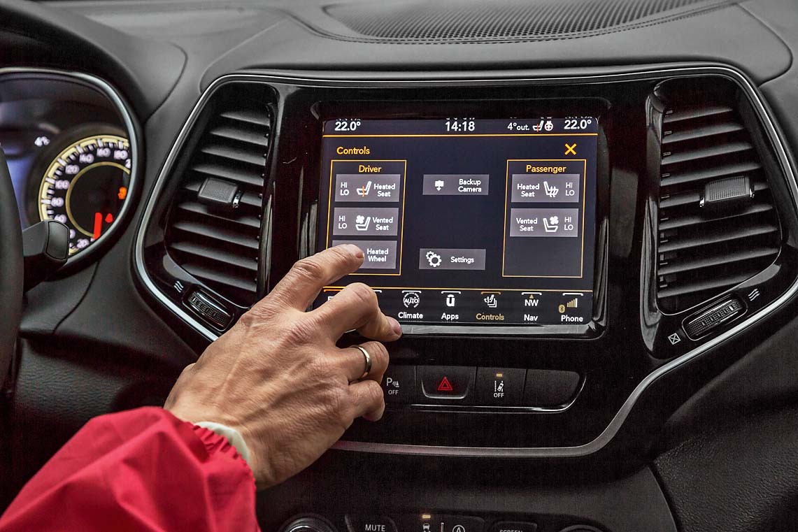 На что Сherokee и Discovery Sport смотрят совсем по-разному, так это на оформление и компоновку салона. Интерьер «американца» производит двоякое впечатление. Посадка удобная, оснащение – полная чаша. На первый взгляд все в полном порядке, но начинаешь присматриваться, обживаться и понимаешь, что не все тут идеально. Верх передней панели обтянут кожей, внизу же -– бюджетный пластик. У информационно-развлекательной системы большой экран, огромные возможности, но меню не русифицировано, да такое, что ногу сломишь. Полностью автоматические стеклоподъемники только спереди. От дорогого автомобиля ждешь внимания к мелочам, и в этом смысле Jeep не образец для подражания.