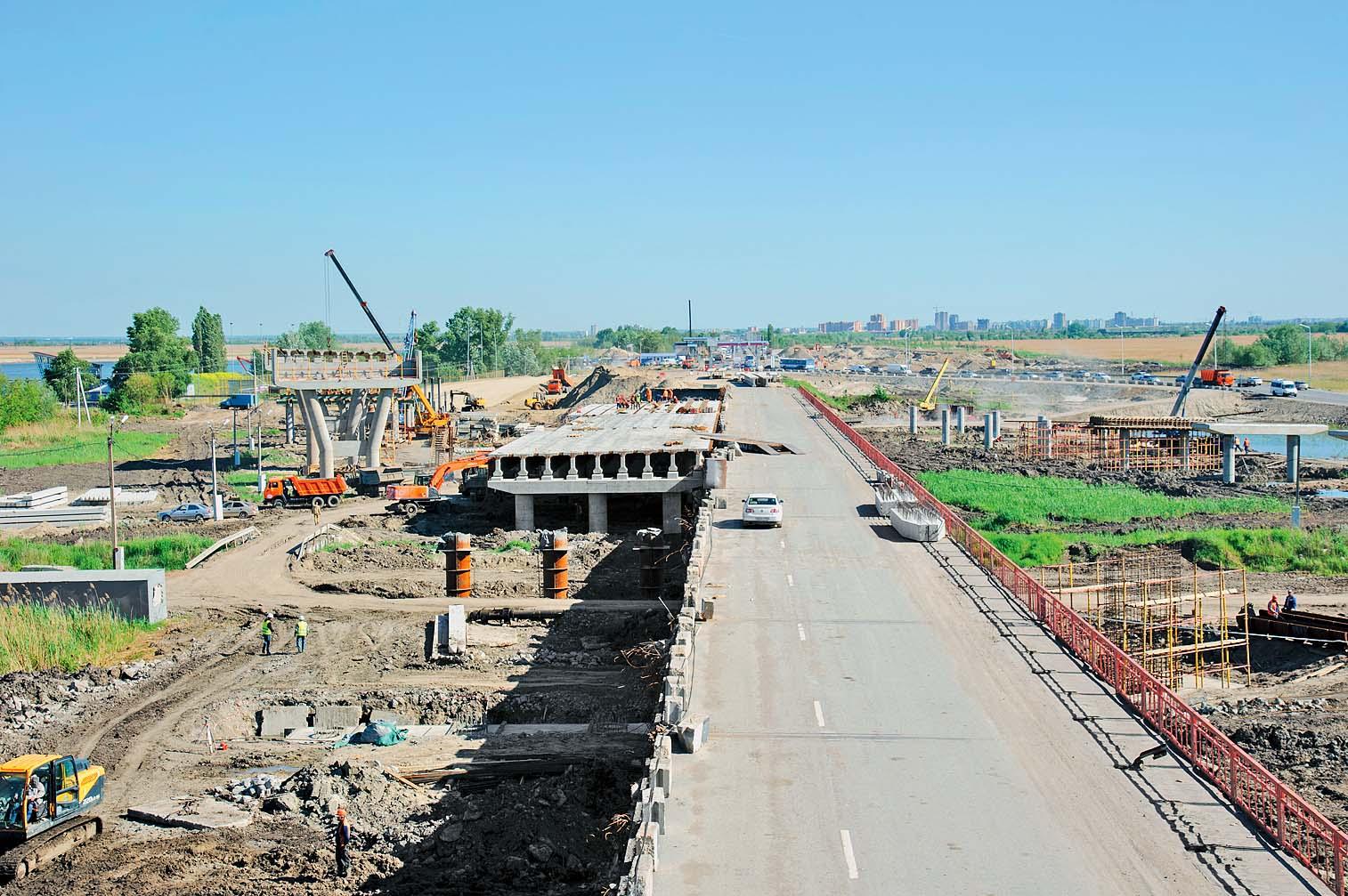 Беспрепятственно въехать в Ростов-на-Дону с южной стороны за сутки смогут аж 120 тысяч автомобилей. Такова пропускная способность Южного подъезда к городу, реконструкция которого идет полным ходом в рамках подготовки к Чемпионату мира по футболу. В середине мая стройку посетил заместитель руководителя Федерального дорожного агентства Дмитрий Прончатов. Крупный дорожный чиновник проинспектировал ход работ по реконструкции дороги федерального значения А-135 «Подъездная дорога от М-4 «Дон» к Ростову-на-Дону» и посетил азовский Центр инновационных компетенций – первую в России дорожную лабораторию, оборудованную по новым стандартам Технического регламента Таможенного союза. Южный подъезд расширяют с четырех до восьми полос. Плюс к этому здесь появятся новый пойменный мост длиной 305 м, две эстакады и разворот, который пройдет над существующей проезжей частью. После реконструкции автомобильная дорога и транспортные развязки будут иметь параметры первой технической категории.