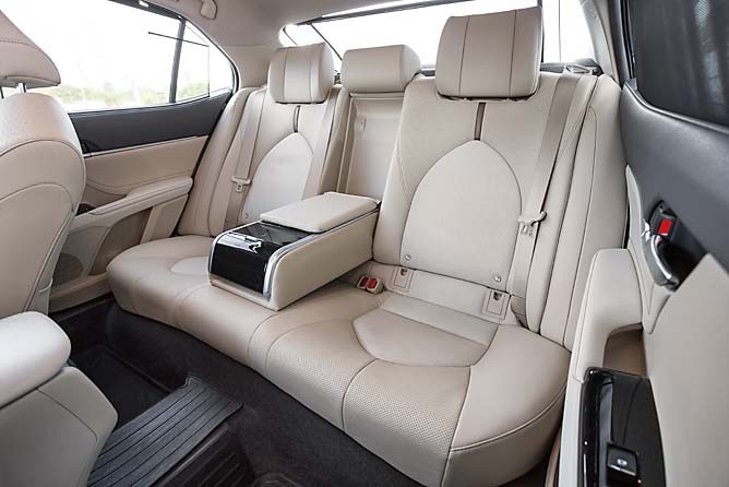 - СЕНСОРНЫЙ ПУЛЬТ УПРАВЛЕНИЯ комфортными функциями для задних пассажиров есть только в двух самых дорогих комплектациях Camry.