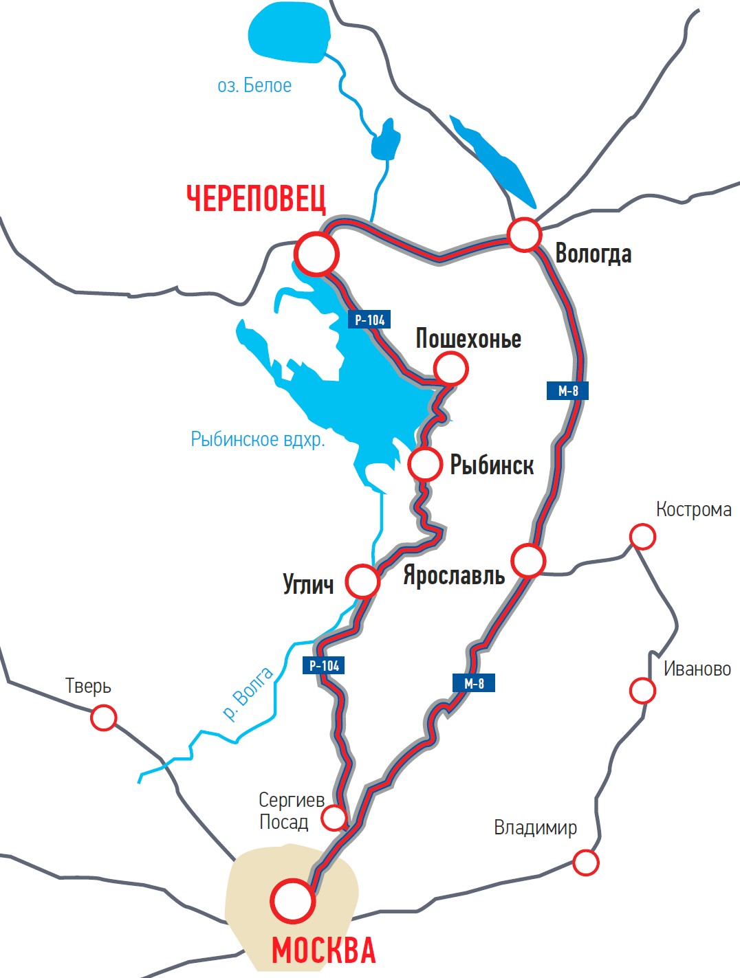 Есть несколько вариантов, как добраться на машине из Москвы до Череповца. Можно ехать через Сергиев Посад, Углич, Рыбинск, Пошехонье по дороге Р-104 – 500 км пути. Или выбрать М-8 «Холмогоры» и маршрут через Переславль-Залесский, Ростов, Ярославль, Вологду – 600 км пути. Желающие устроить себе большое путешествие и вовсе могут совершить круговой маршрут. Мы выбрали первый вариант. До Сергиева Посада дорога отличная, далее до Углича – нормальная, а после… Сразу за Угличем качество асфальтового полотна резко ухудшается, вас ждут ямы и ямищи. Вплоть до самого Череповца дорога представляет собой смесь множества заплаток разного уровня и размеров, трещин, трамплинов для прыжков, кочек и ям. На обычной легковушке сюда лучше не ехать. Во всяком случае пока (а там – вдруг все-таки отремонтируют?). А вот если у вас автомобиль для бездорожья – тогда другое дело, здесь он будет в своей стихии. Хотя есть на Р-104 и плюсы: фур нет, да и вообще другие машины встречаются редко, так что нет никаких заторов. Да камер, похоже, тоже нет. Если вы поедете через Ярославль, навигатор может предложить свернуть около Данилова в сторону Пошехонья и попасть на ту самую Р-104. Взвесьте все «за» и «против». Мы, добравшись до Череповца, обратно решили поехать все-таки через Вологду. Пробег получается больше, зато дороги идеальные.