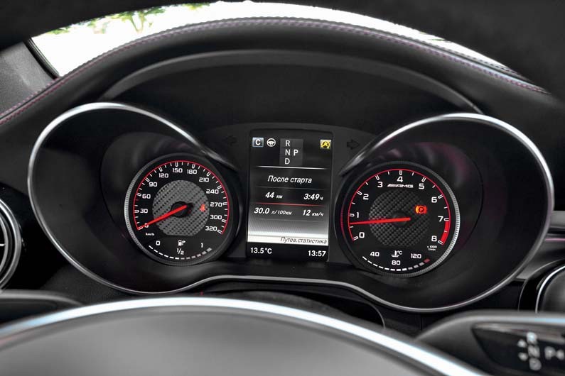 И это только начало спектакля. Заполучив тебя в свои объятья, плотно прижав ремнями к спинке спортивного сиденья, Mercedes-AMG усиливает визуальный ряд звуком. Первый старт двигателя сопровождается мощным, животным рыком. Но дразнить зверя не следует. Даже в самом «мирном» режиме работы мотора, трансмиссии и шасси – Comfort, – при резком нажатии на педаль газа он шарахается так, будто наступил на лист раскаленного железа. Обязательно учтите это, если вздумаете выгуливать его на городских улицах.