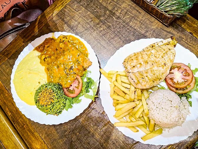 Обычно в стоимость номера в отеле включен завтрак: кофе, хлеб с маслом и джемом, булочки, фрукты. Фрукты в Бразилии нужно попробовать обязательно, особенно манго – с теми, что продаются в России, не сравнить! Цены на блюда в кафе начинаются от 500-600 рублей за, например, рис с курицей. Но порция будет большая. На пляжах повсеместно продаются кокосы, от 80 рублей за штуку.
