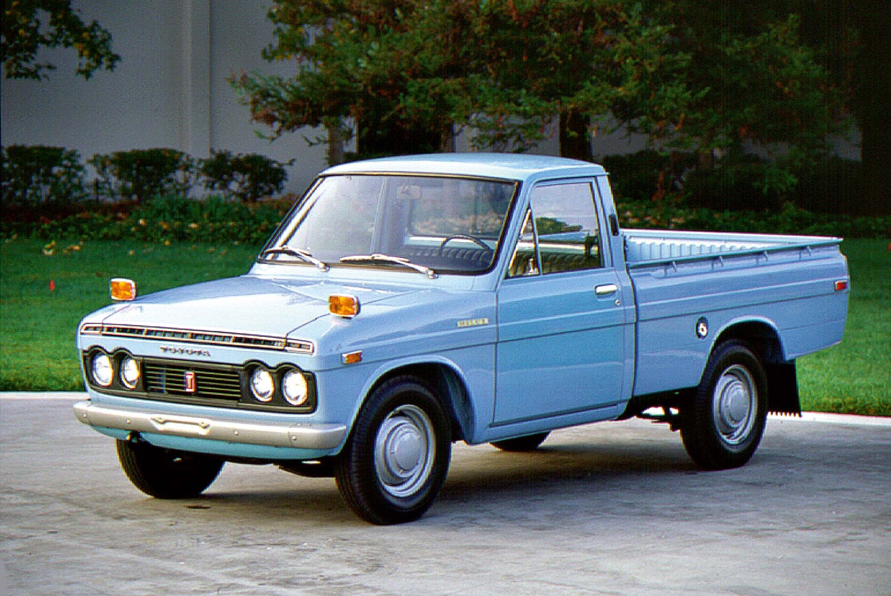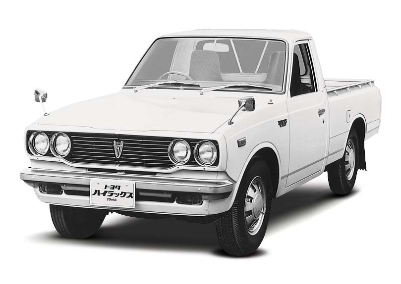 Родословная Hilux по сути берет начало еще в 1947 году, когда Toyota сделала грузовичок SB на базе своей первой послевоенной легковой модели SA/Toyopet. Простенький 27-сильный однотонник оказался успешным, и компания решила развивать линию легких перевозчиков. Следующим в 1954 году стал RK, уже полуторатонный и с разными вариантами кузовов и кабин. А затем в 1962 году появился двухтонник Stout, вот он и послужил основой для серьезно усовершенствованного пикапа, который назвали Hilux и выпустили весной 1968 года.