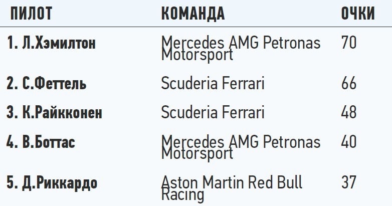 Положение в чемпионате: личный зачет пилотов