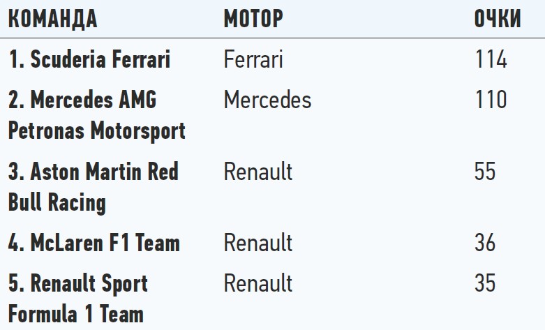 Положение в чемпионате: кубок конструкторов