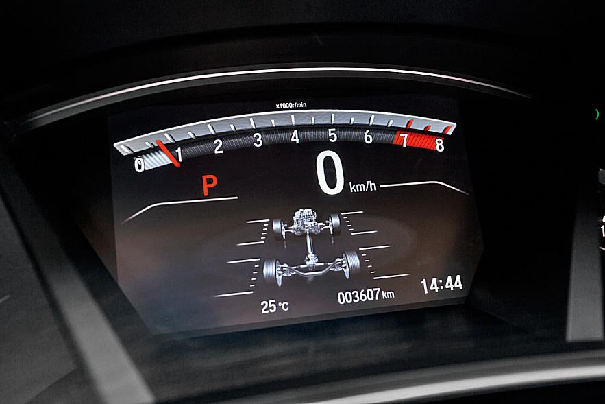 Новый CR-V – это прежде всего автомобиль для путешествий на дальние расстояния. Причем качество дороги, по которой пройдет маршрут, решающего значения не имеет. Машина четвертого поколения плохое покрытие и отсутствие асфальта переносила болезненно, новая же более универсальна. Различий в поведении кроссовера на шоссе и на «грунтовке» практически нет, разве что во втором случае вибраций в салоне больше. При этом CR-V великолепно держится на подобных дорогах благодаря наличию полного привода. Крутящий момент по колесам распределяет электронный блок управления, а сам процесс распределения наглядно представлен на приборной панели.